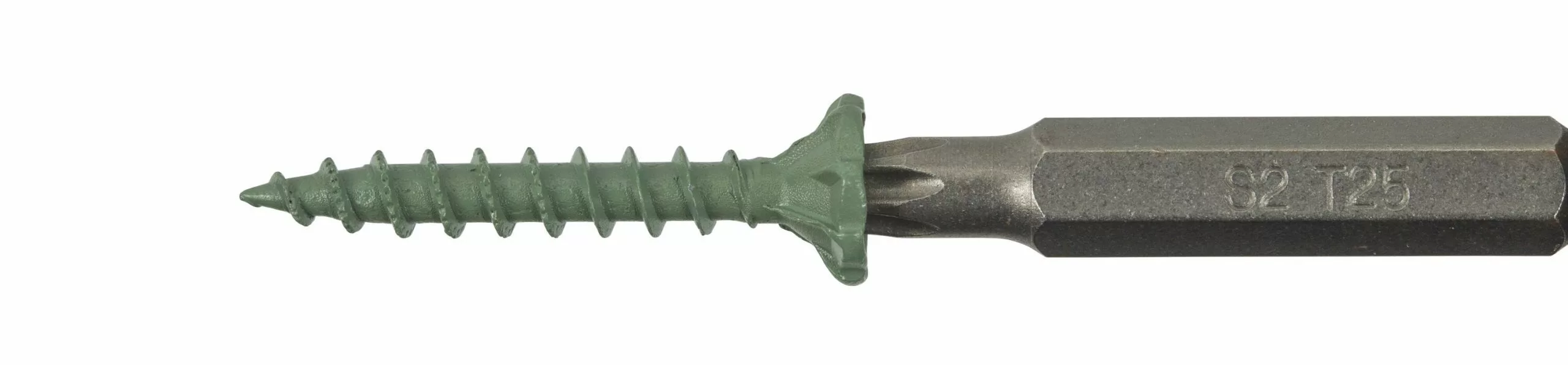 - Star drive with T-25 bit provides stickpin for easy one-handed installation and eliminates cam-outs