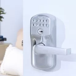 Door Keypad Lock Schlage Satin 1-Cylinder Lighted Handle Electronic Plymouth Chrome
