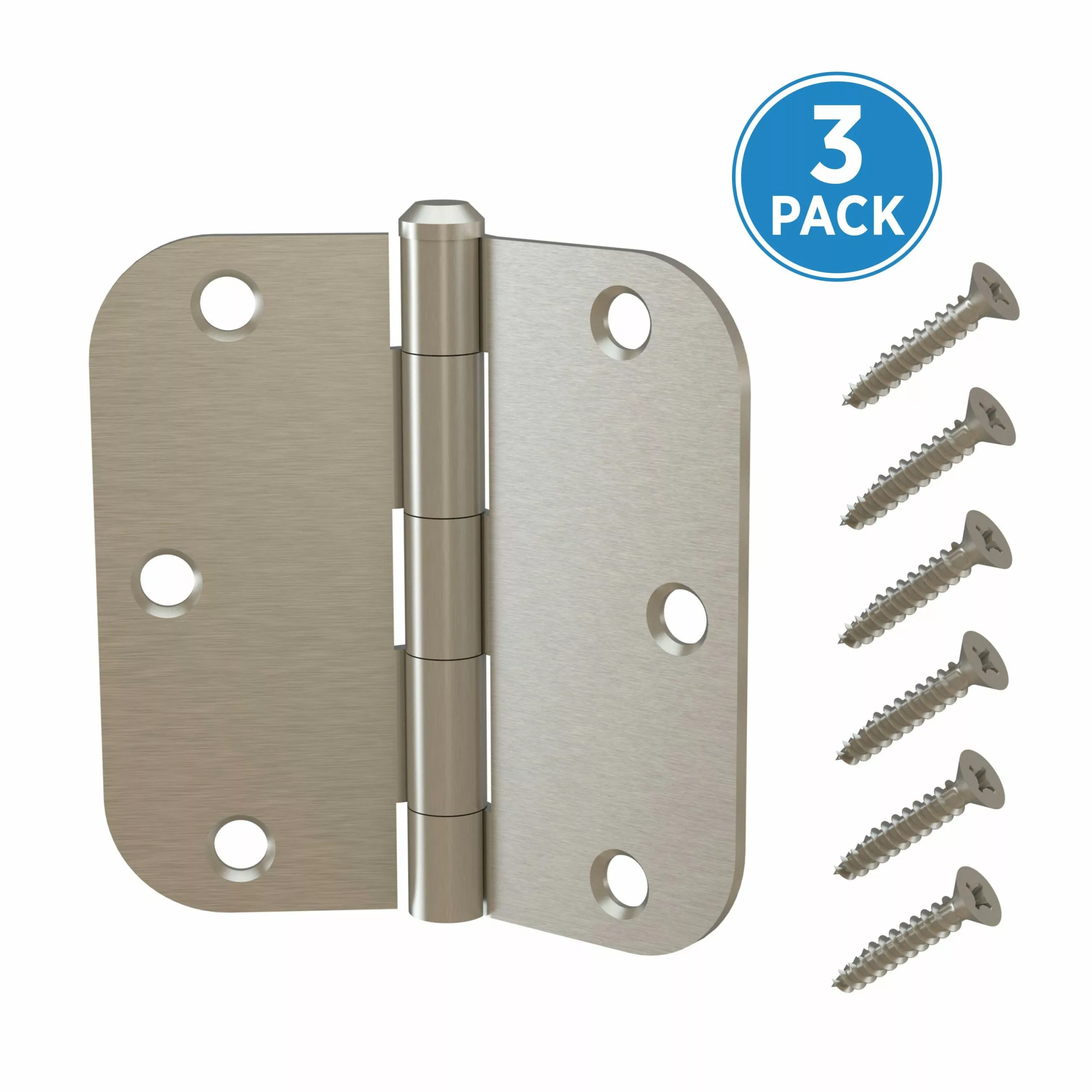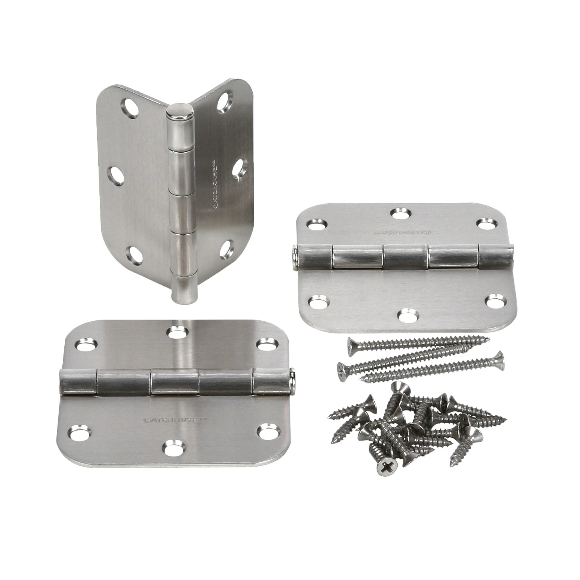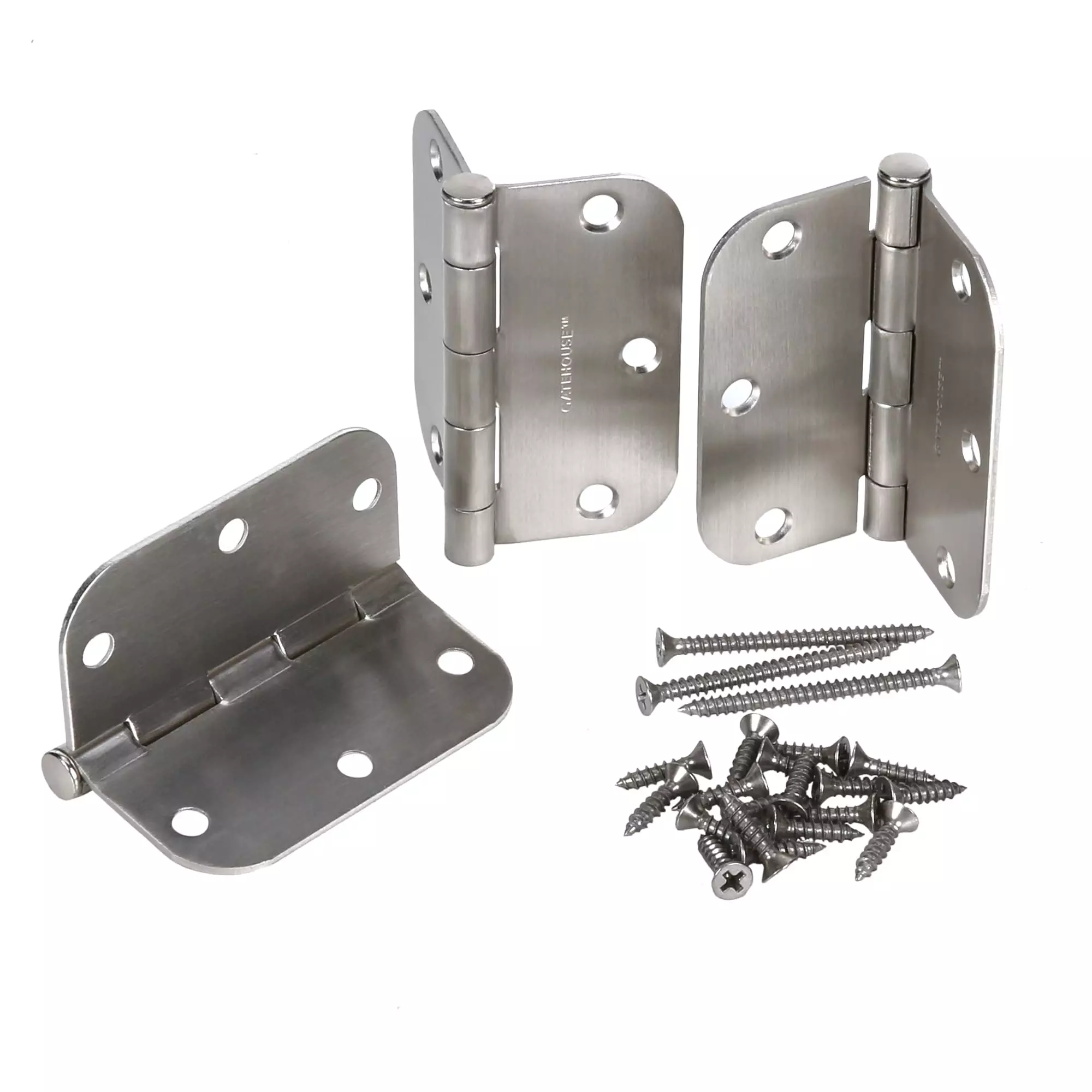 Small but mighty, residential door hinges might be the most important piece of a well functioning door. These 3.5-In hinges with 5/8-In radius corners are ideal for most light or medium-duty residential doors. Installation is easy using the included hardware and removable hinge pin design, and many common finishes are available to match the existing door hardware. Most residential doors need 3 hinges per door; taller doors could require 4 hinges and lighter doors could require just two. For brand new doors it is best to mortise the door and jamb to 0.08-In for perfectly flush installation. The countersunk screws add to the seamless appearance. These door hinges from Gatehouse come pre-oiled for a lifetime of smooth operation.
