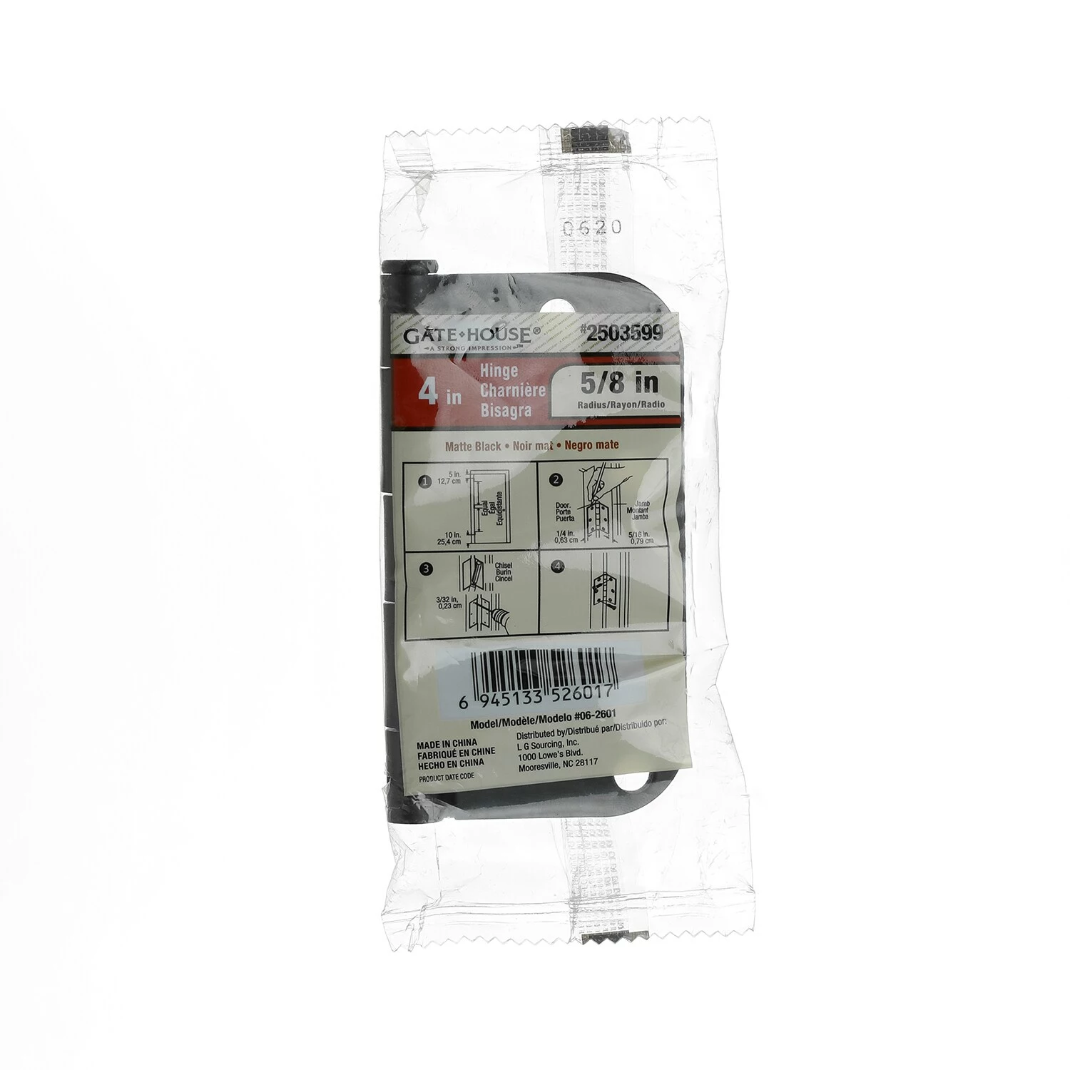 4 In. 5/8 In. radius door hinge matte black.