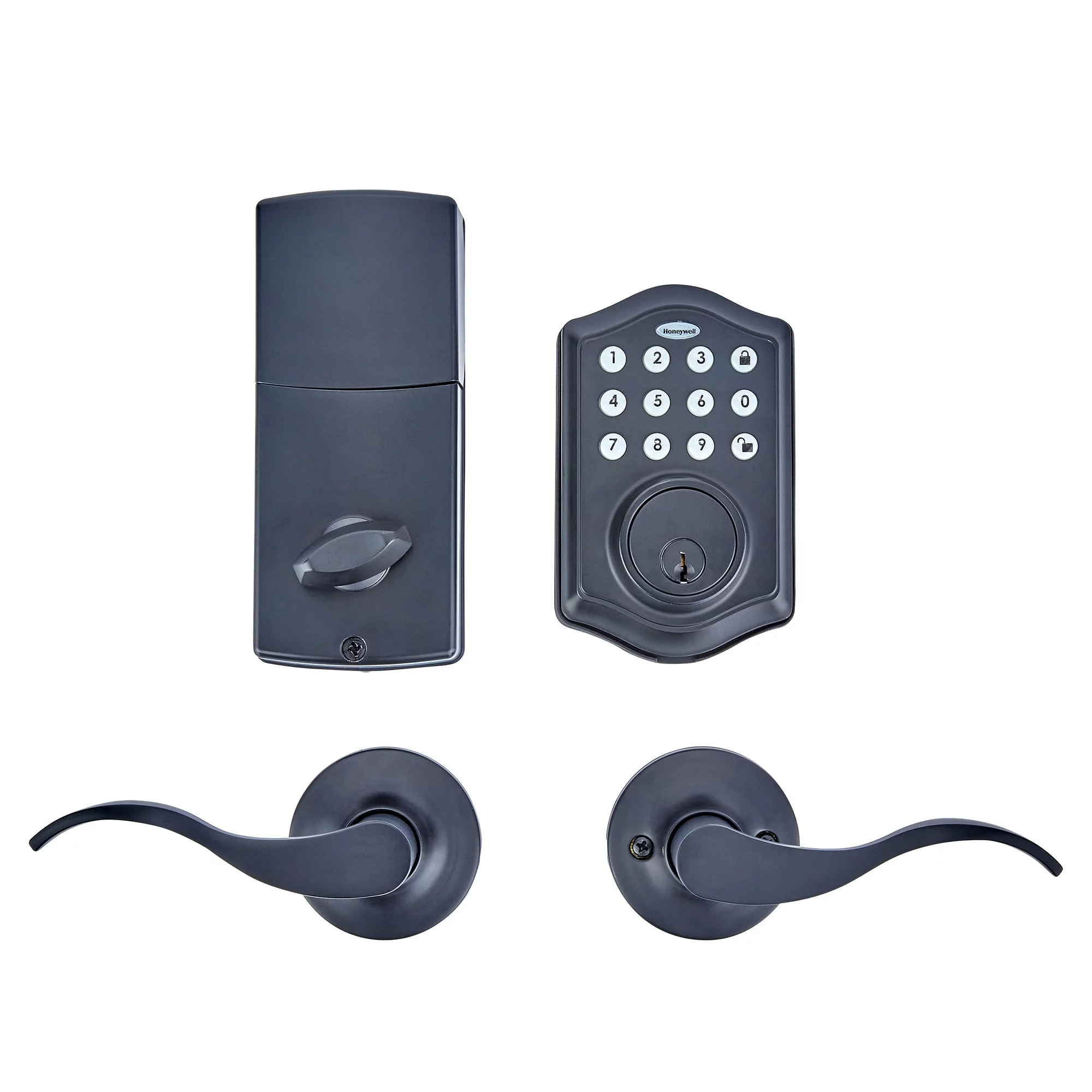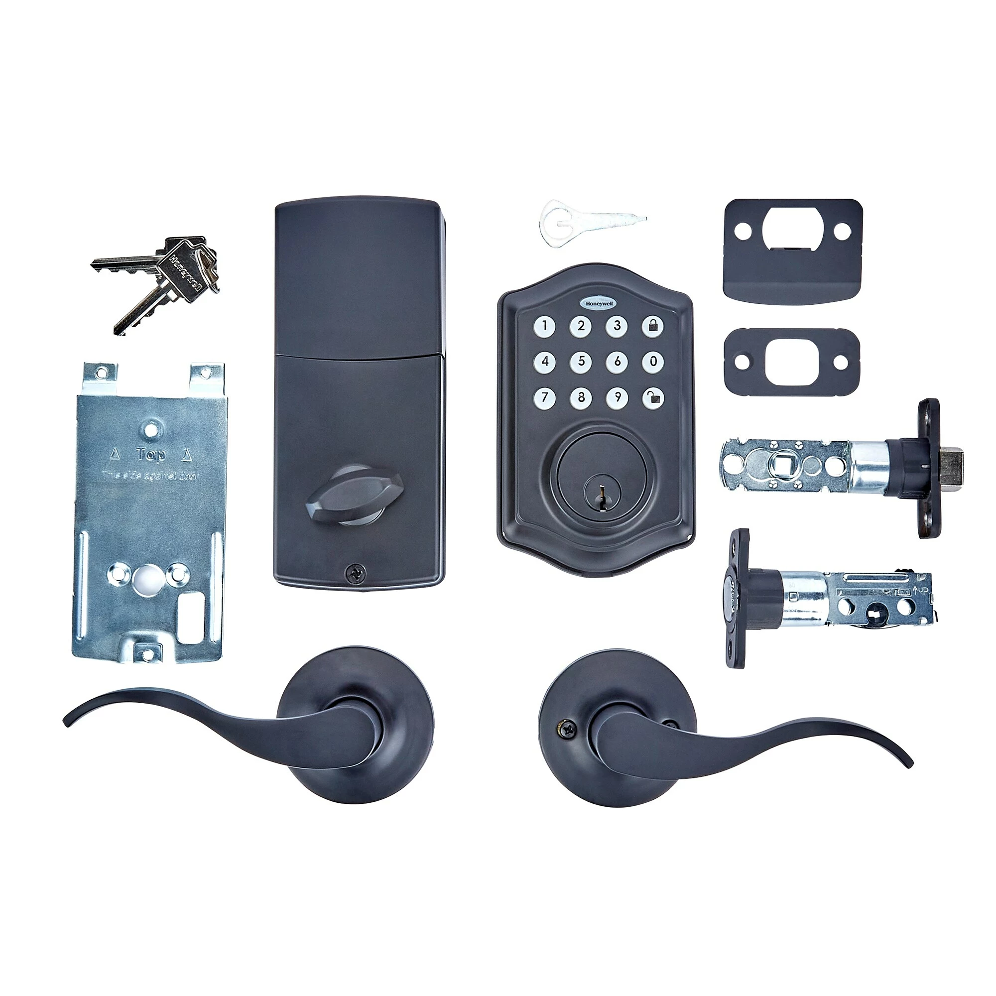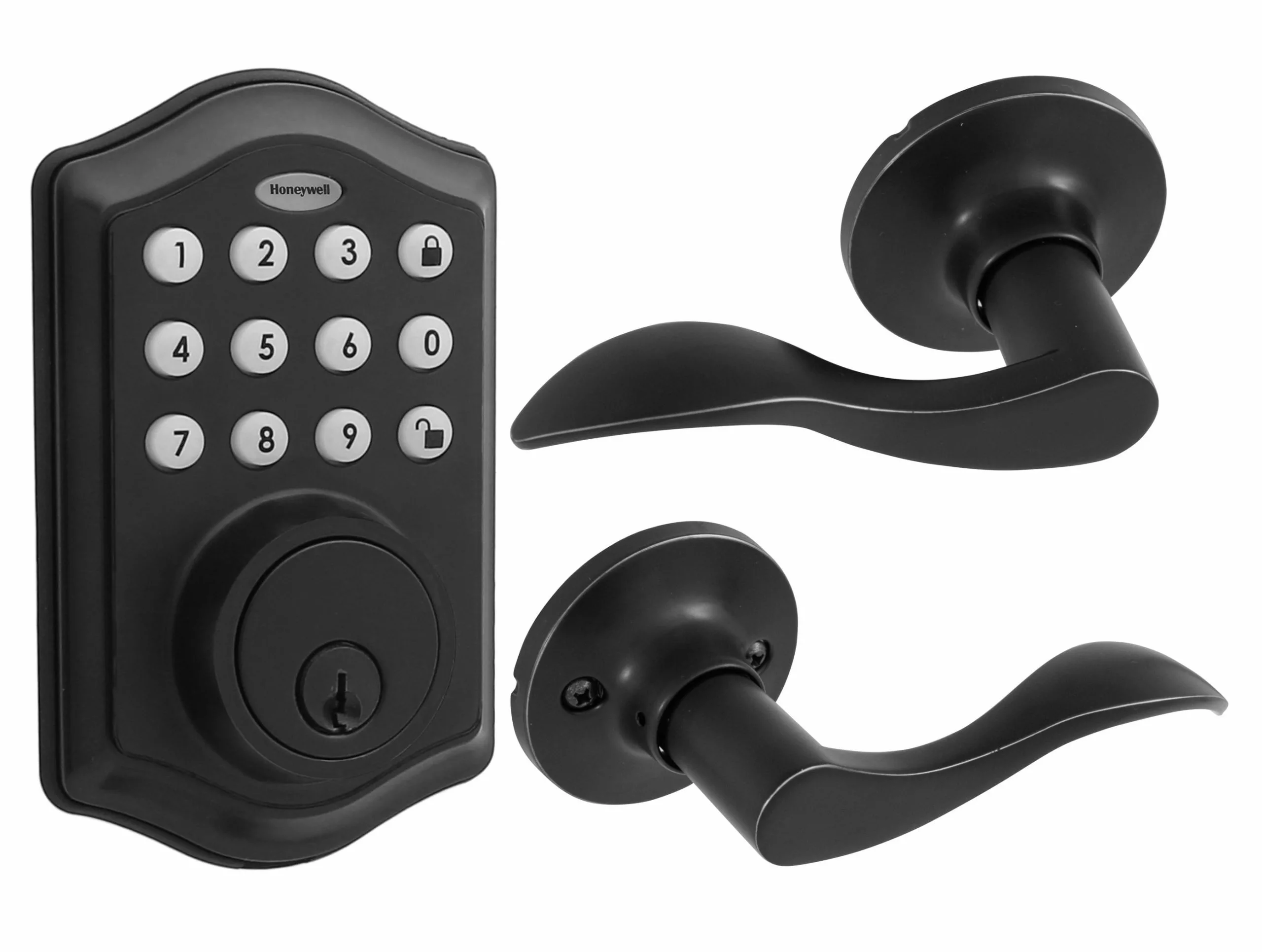 The Honeywell electronic entry deadbolt and passage lever Combo provides security and keyless convenience for your home, rental, or office. This Lock can accommodate up to 50 unique codes and is easy to use and install. The Lock will compliment any home decor style.