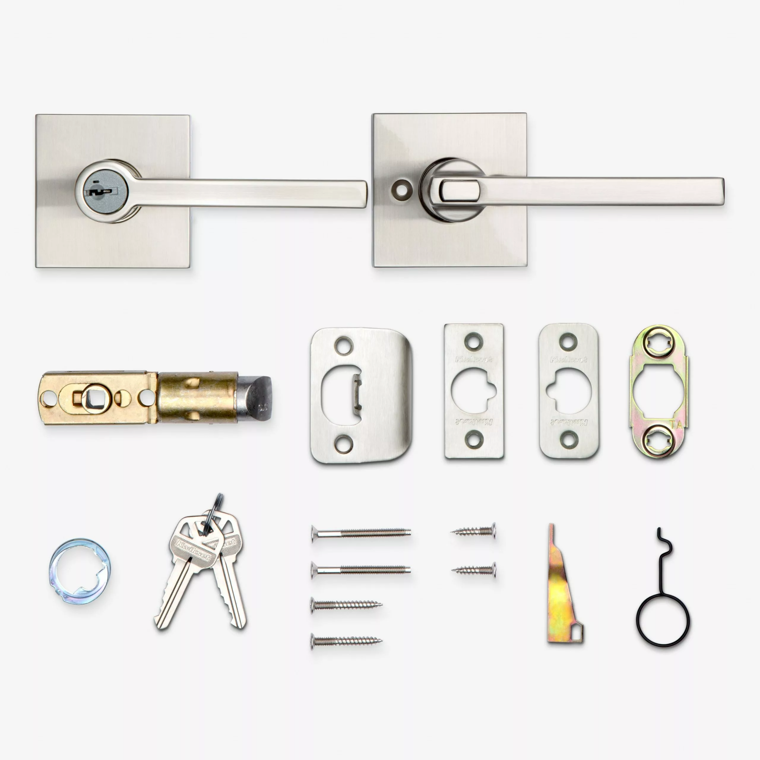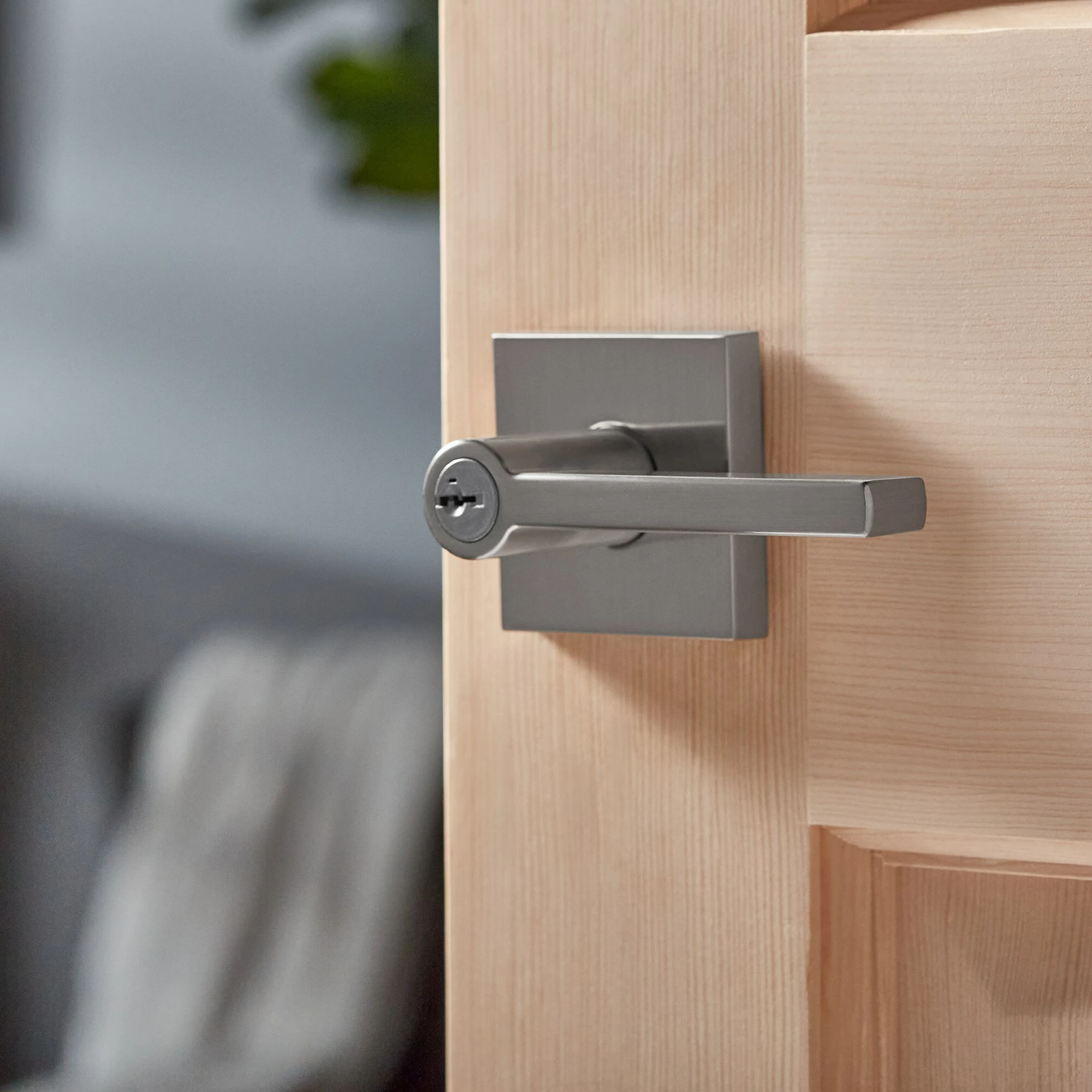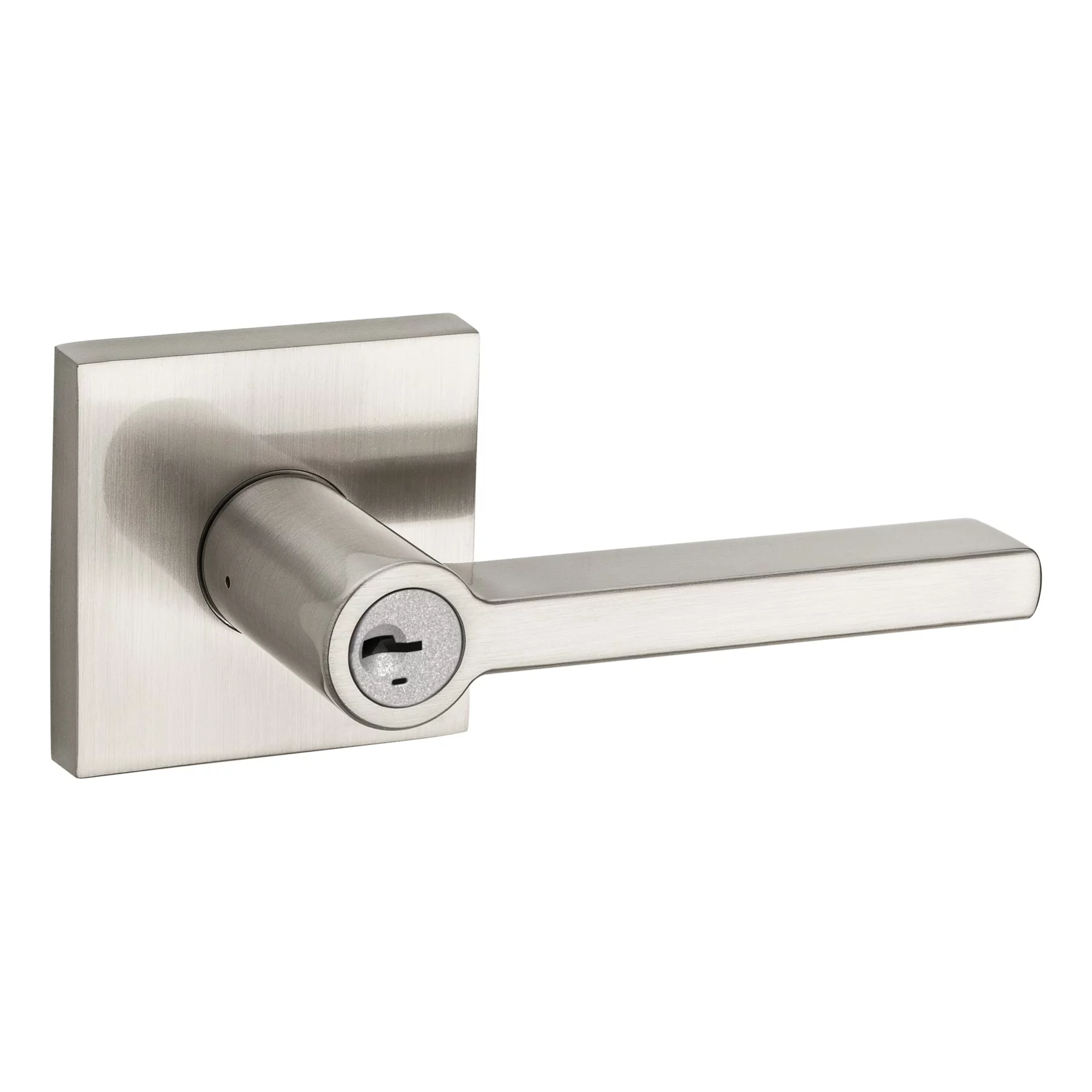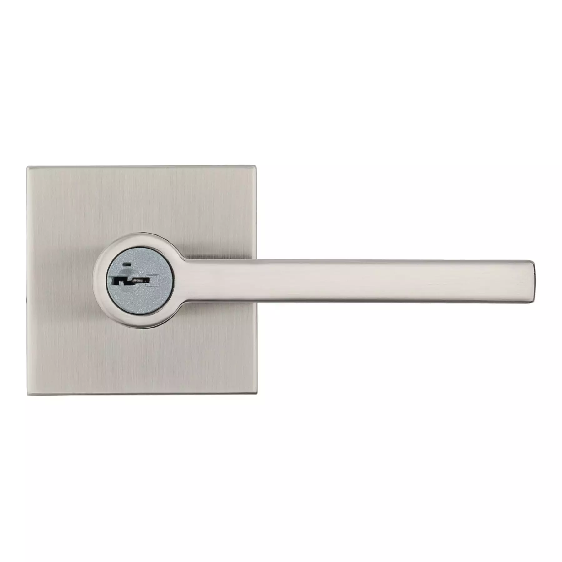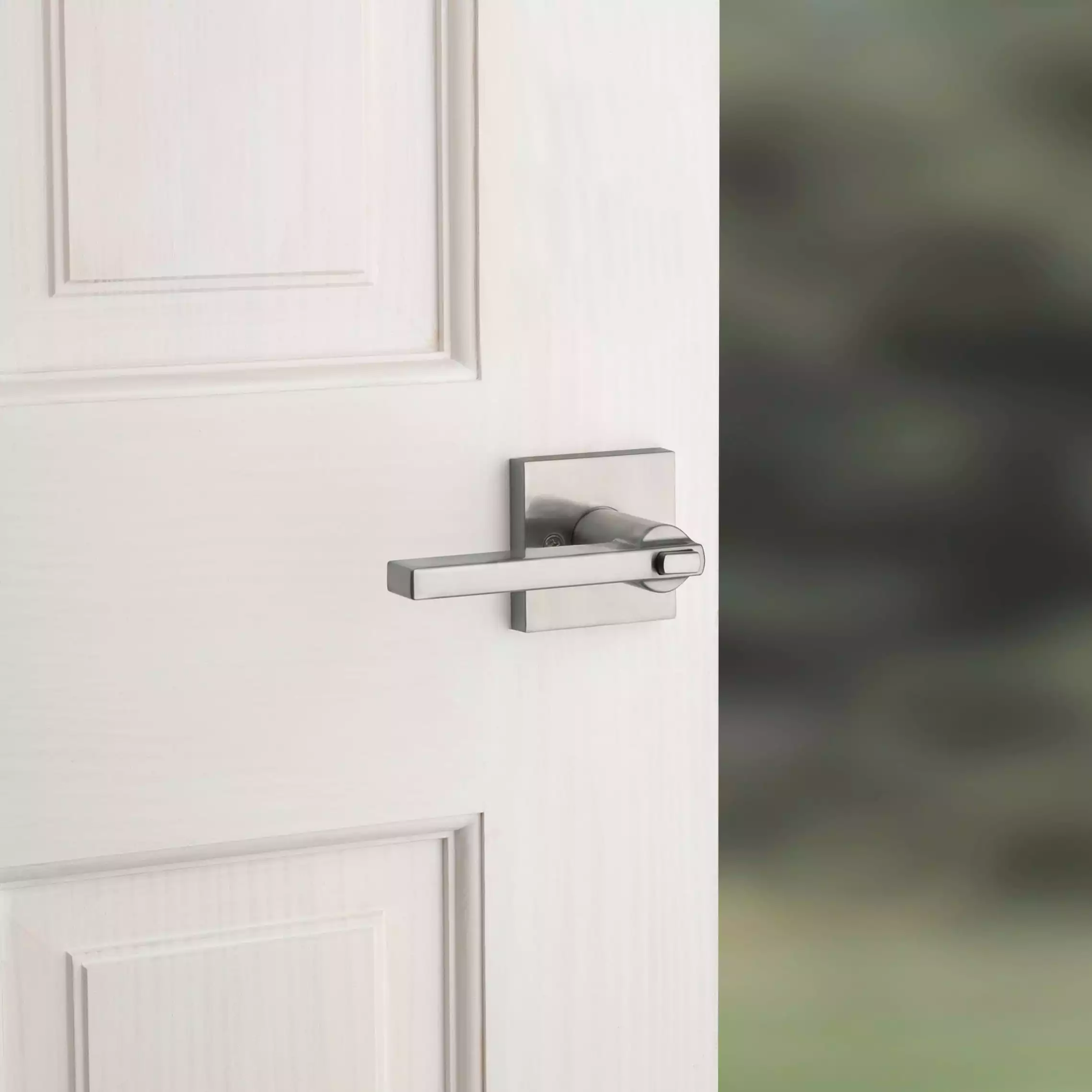 Step up to designer styles and superior security with Kwikset Signature Series products. Halifax combines sophistication and simplicity, making this design the ideal accent for a Contemporary home. Both knobs/levers can be locked or unlocked by a key on the outside, or push button on the inside. The crisp, clean appearance of the satin nickel finish adds to the overall look of the product and brings a modern feel.
