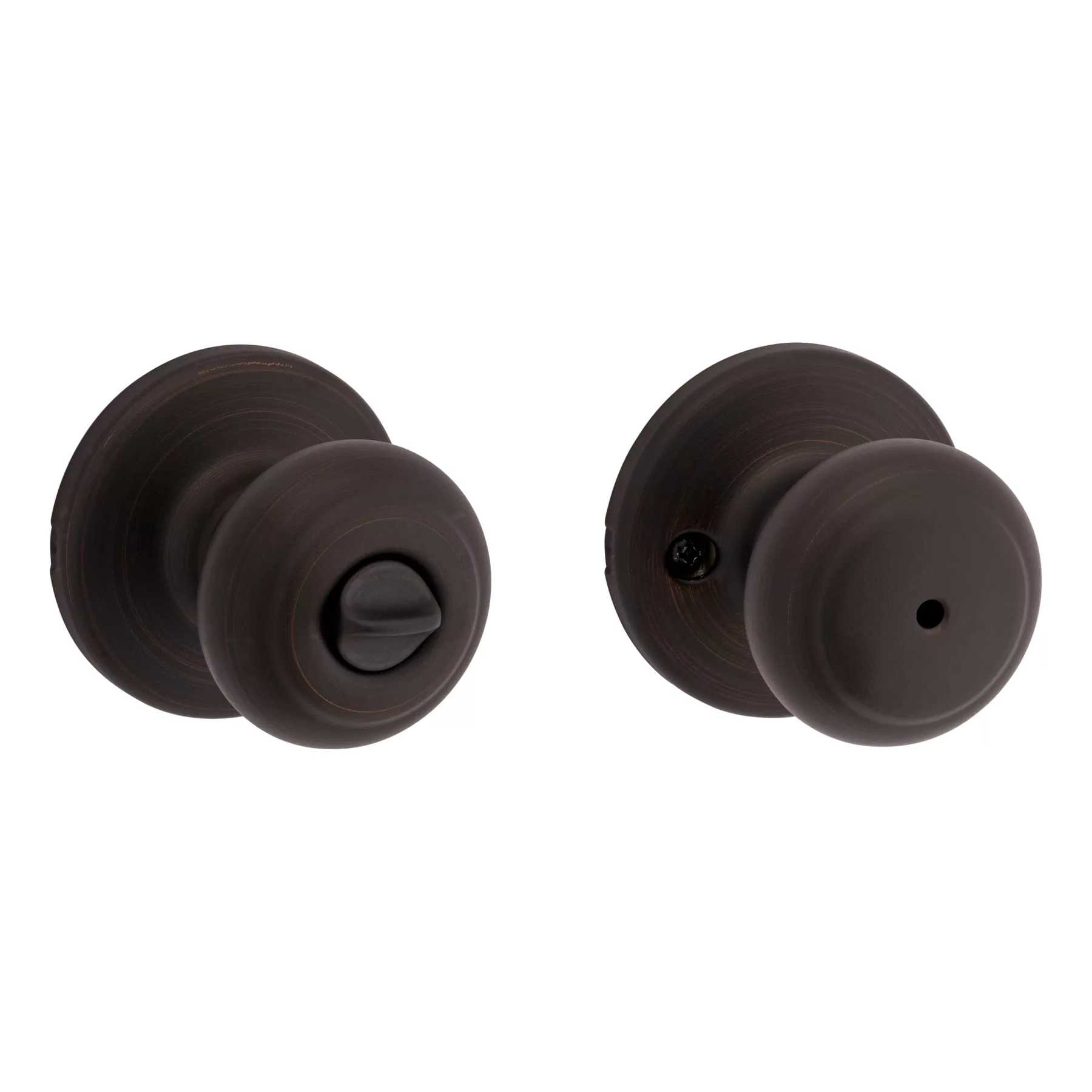 As the industry leader, Kwikset has provided trusted security for over 70 years and has become synonymous with security, peace of mind, style and innovation. The attractive, traditional colonial design of the Cove makes a simple yet elegant statement in any home. This privacy knob/lever is best used in interior bed and bath applications where privacy is required. Both knobs/levers are locked or unlocked by turn piece inside. The outside knob/lever can be unlocked by an emergency key. The venetian bronze finish is hand-rubbed to reveal unique bronze highlights and provides a rich and warm complement to the product’s style.