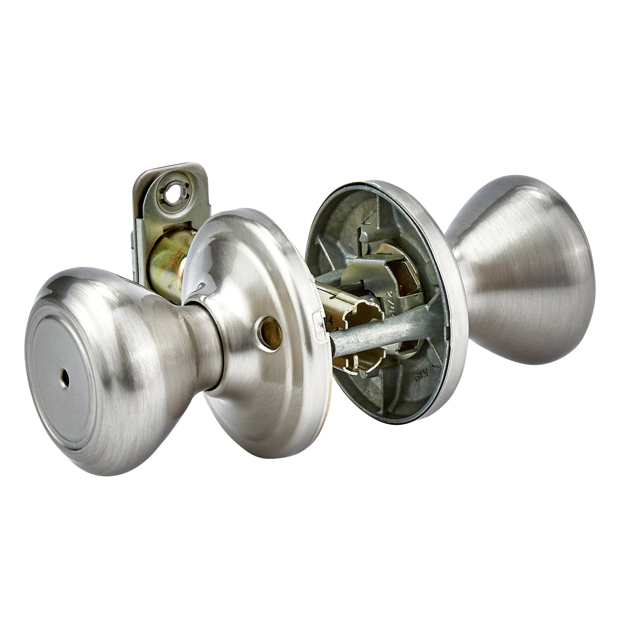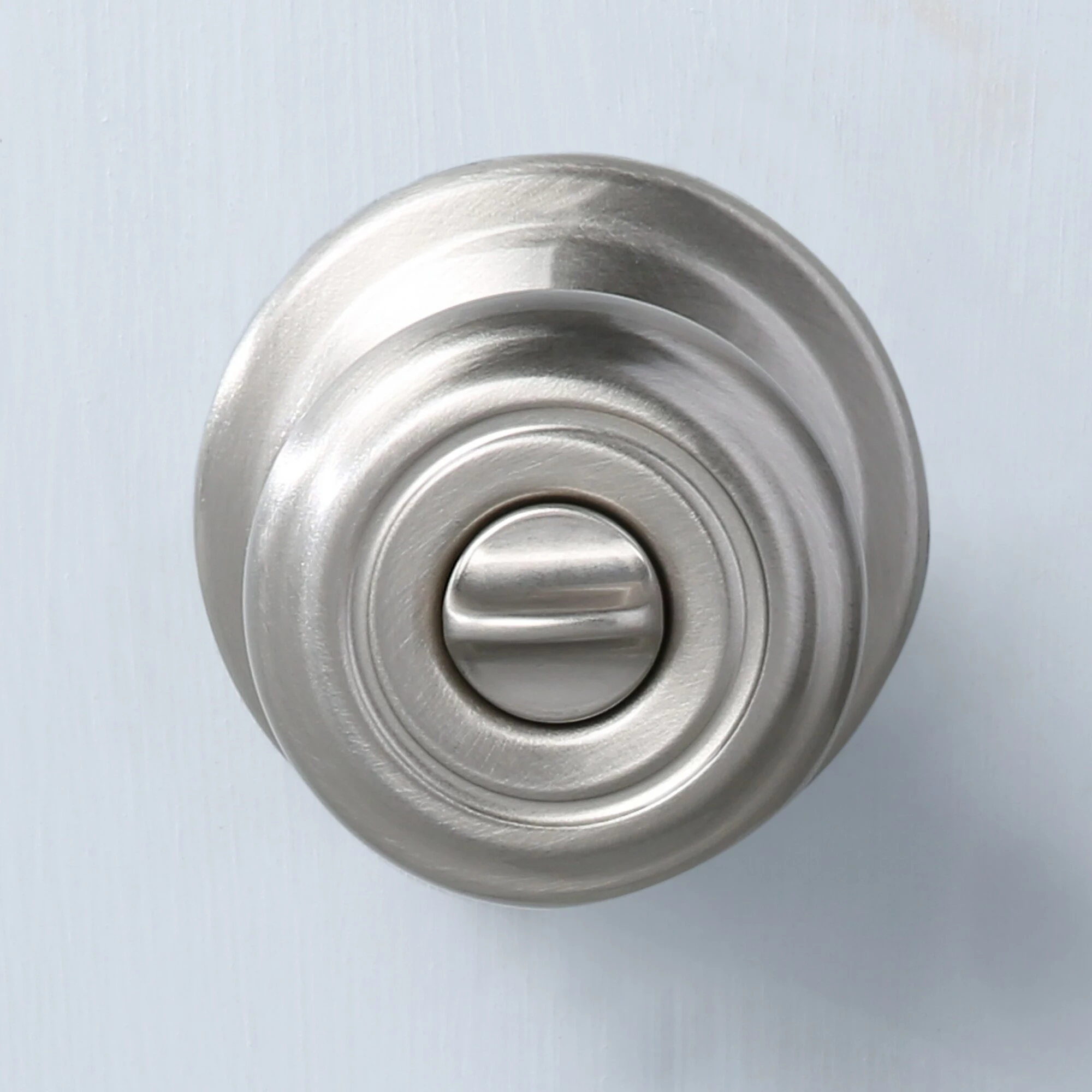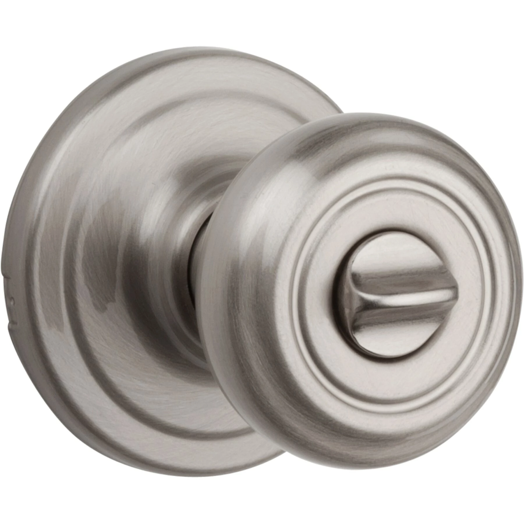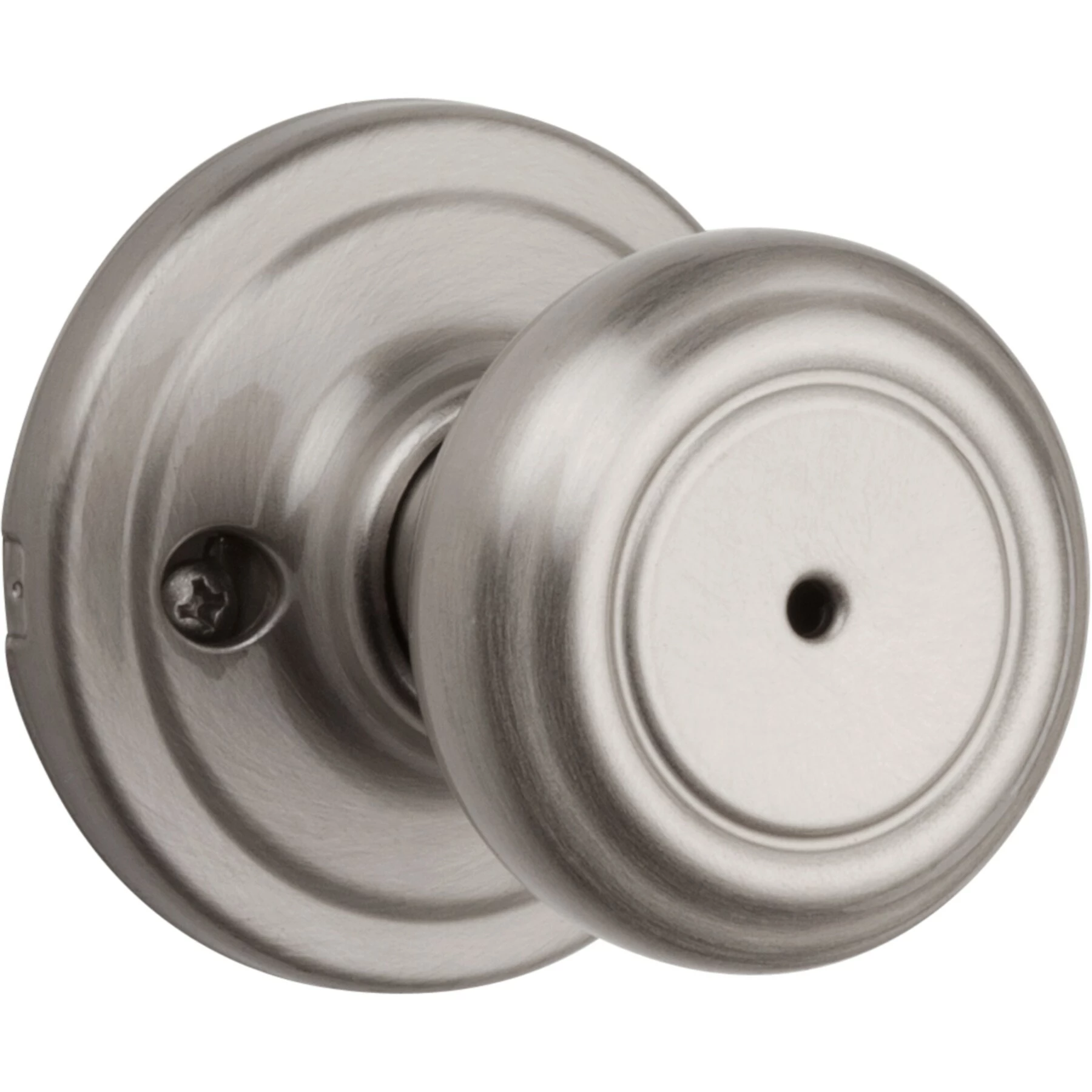 Step up to designer styles and superior security with Kwikset Signature Series products. Classic lines and enhanced stylsing make Cameron a great choice for many home designs. This privacy knob/lever is best used in interior bedroom and bathroom applications where privacy is required. Both knobs/levers are operated by the thumb turn on the inside. The outside knob/lever is unlocked by an emergency key. The crisp, clean appearance of the Satin Nickel finish adds to the overall look of the product and brings a modern feel.