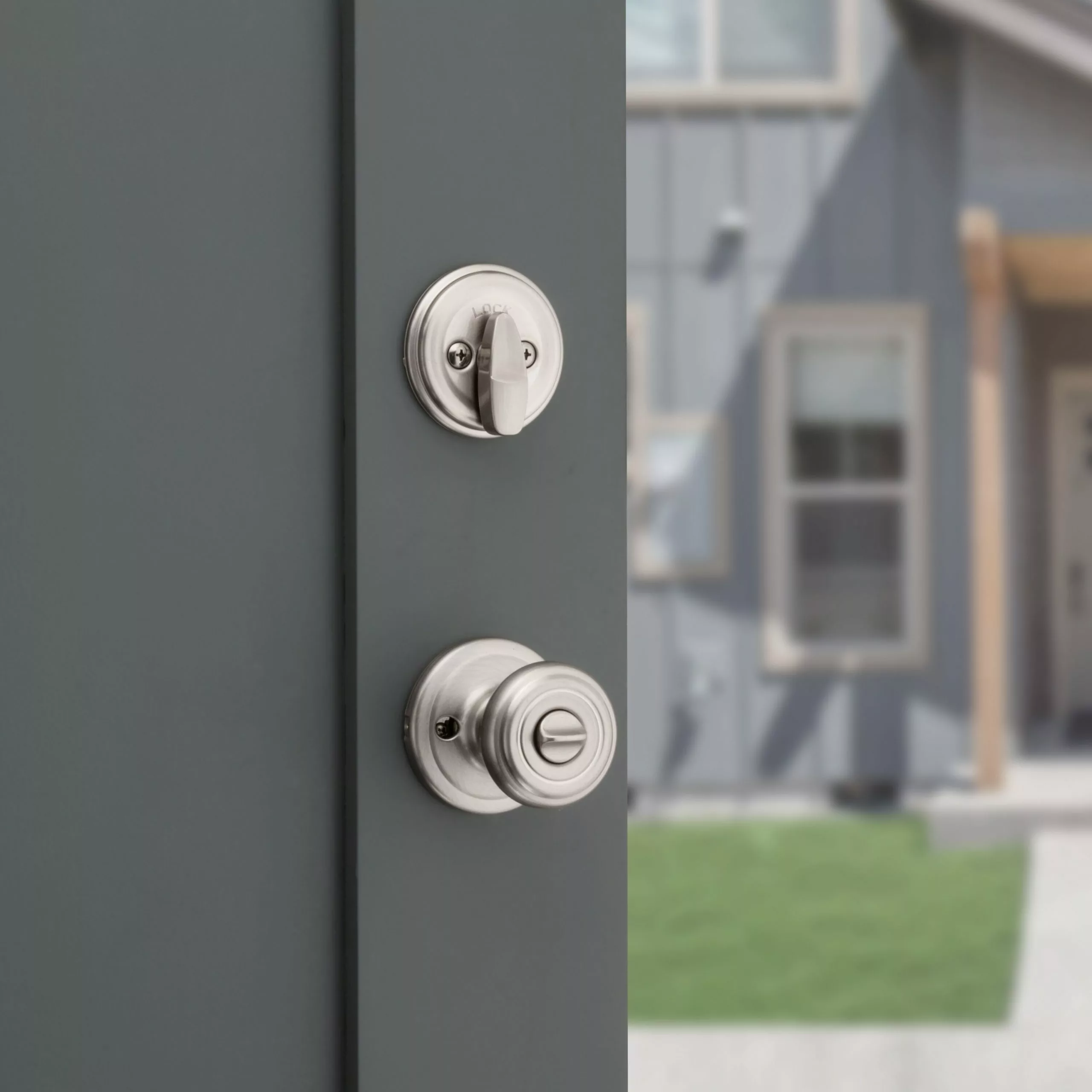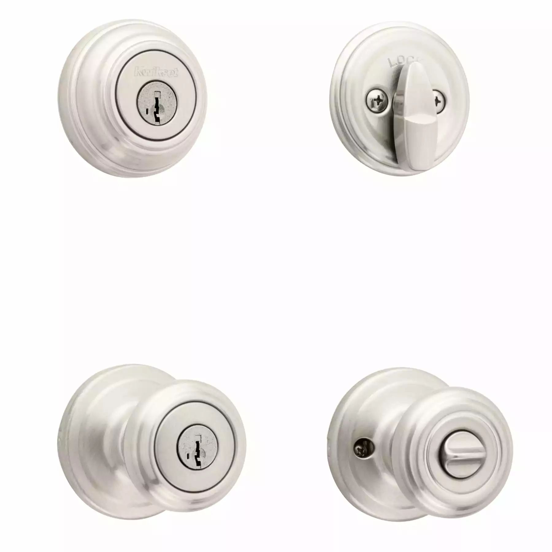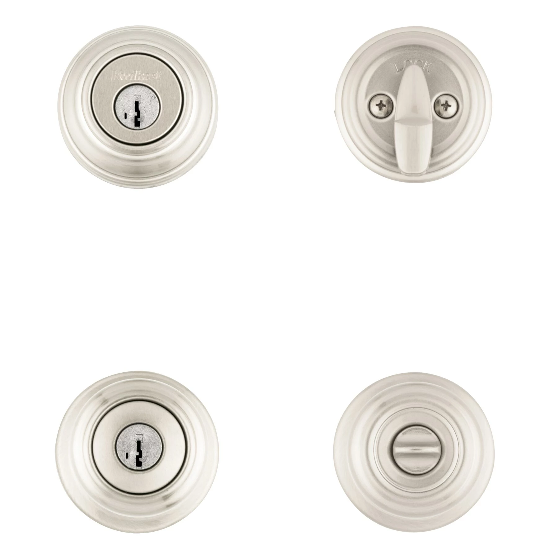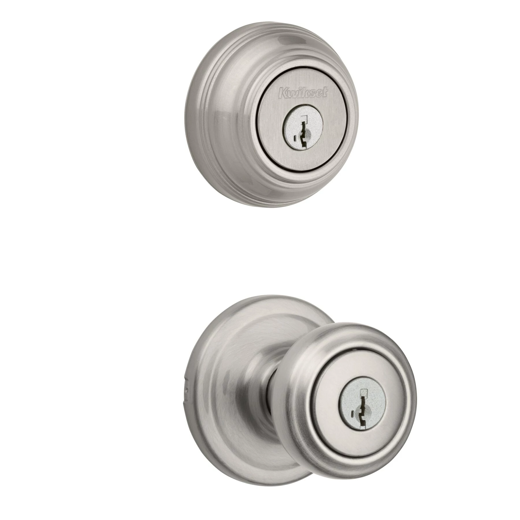 Step up to designer styles and superior security with Kwikset Signature Series products. Classic lines and enhanced stylsing make Cameron a great choice for many home designs. This combo pack provides two locking points — keyed entry and a keyed deadbolt. The crisp, clean appearance of the Satin Nickel finish adds to the overall look of the product and brings a modern feel.