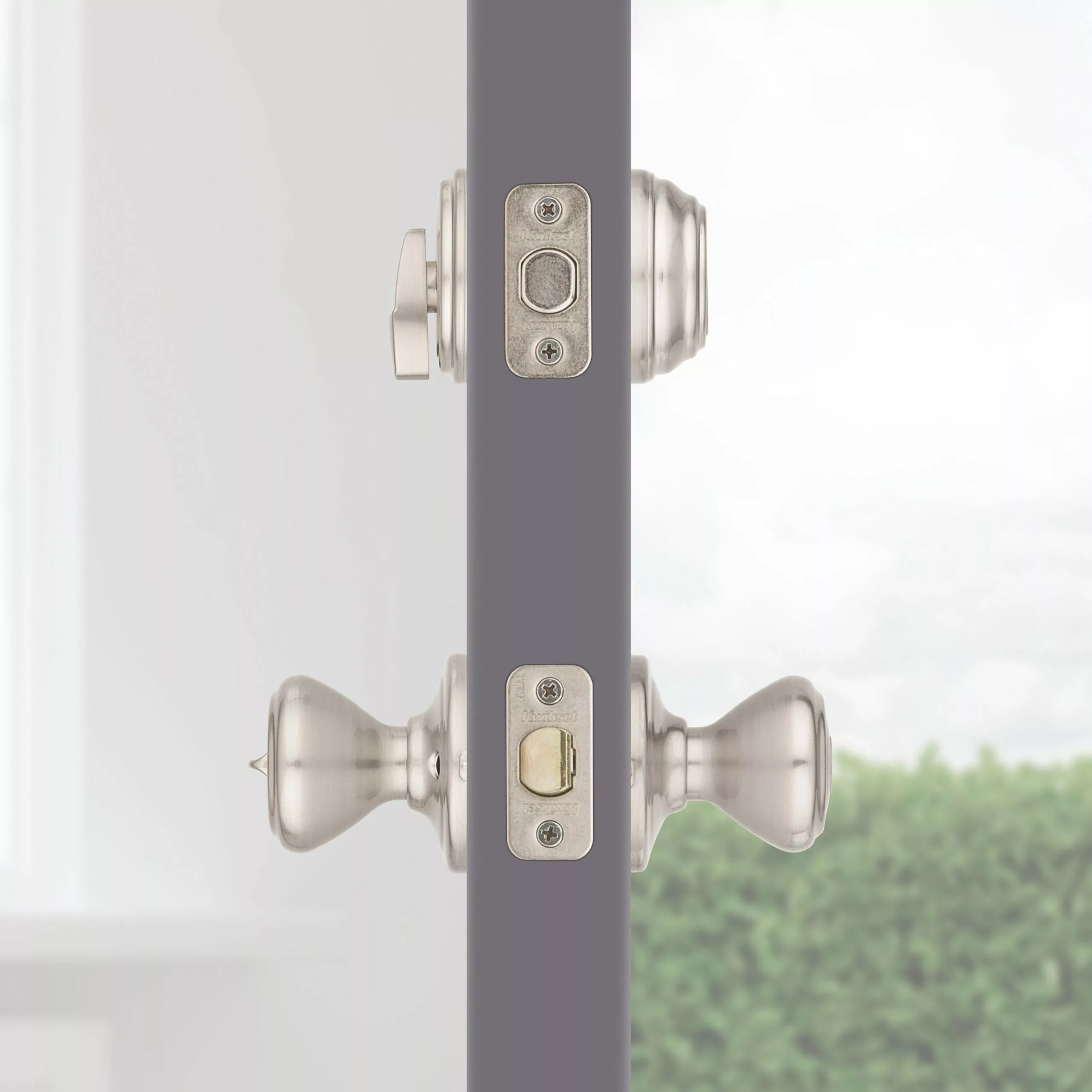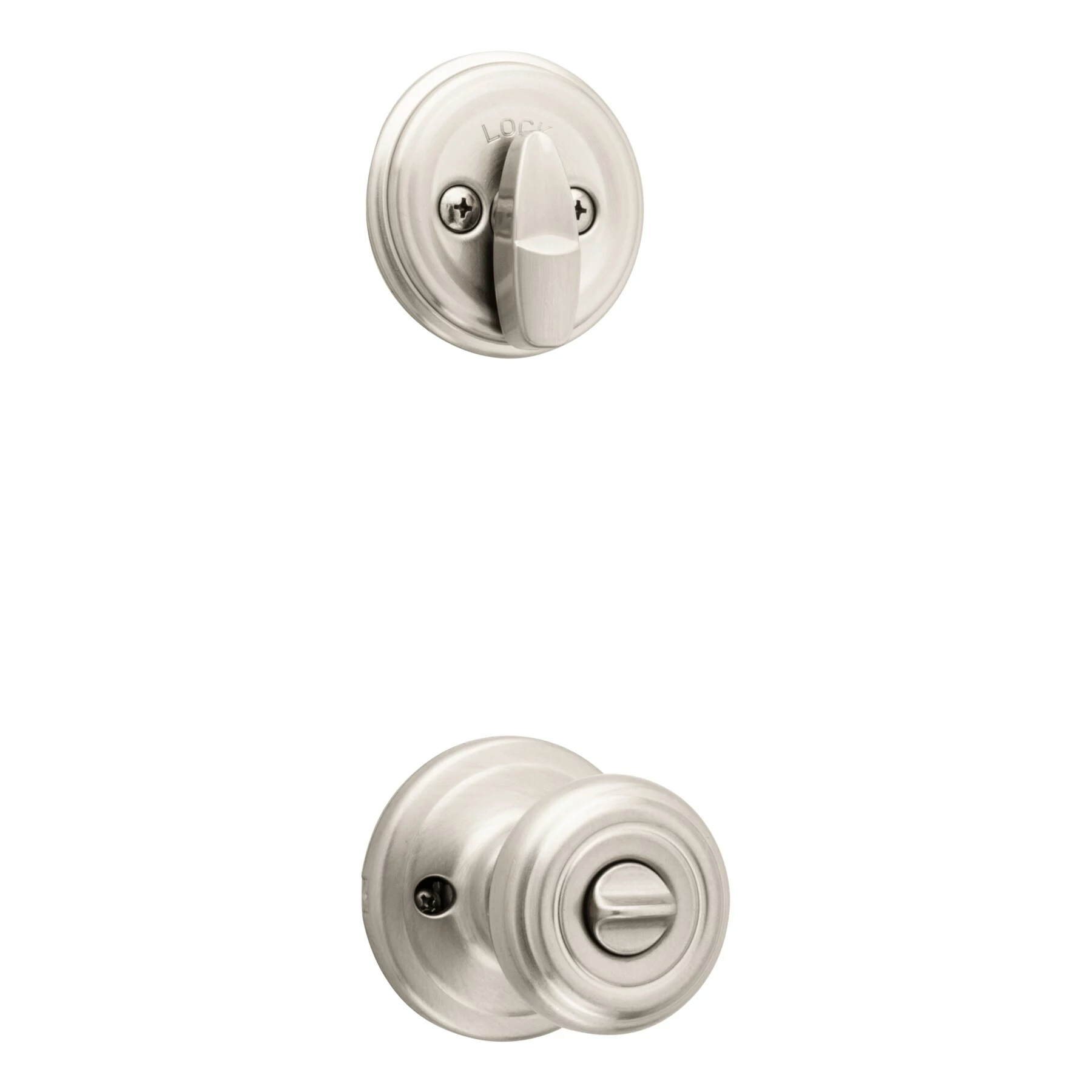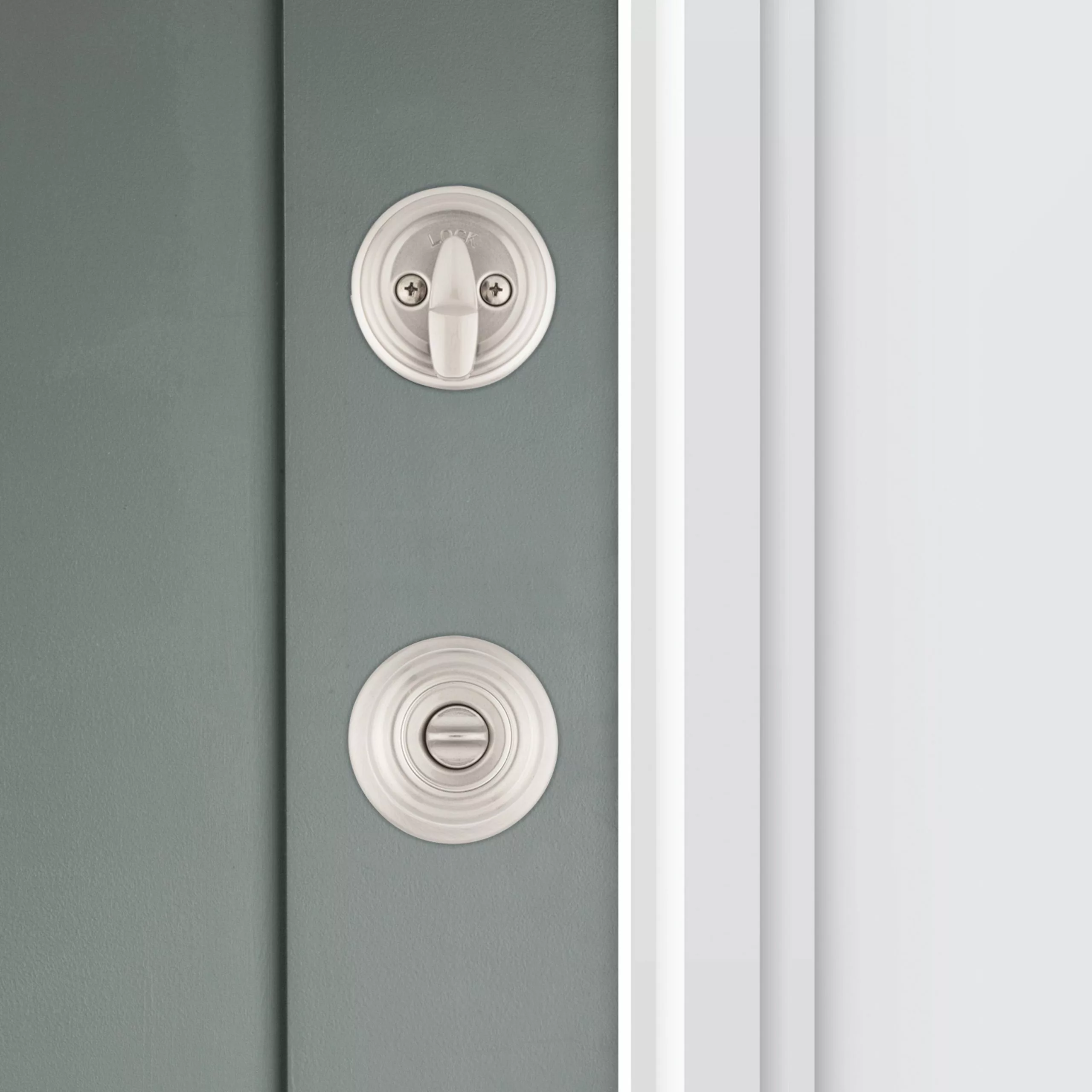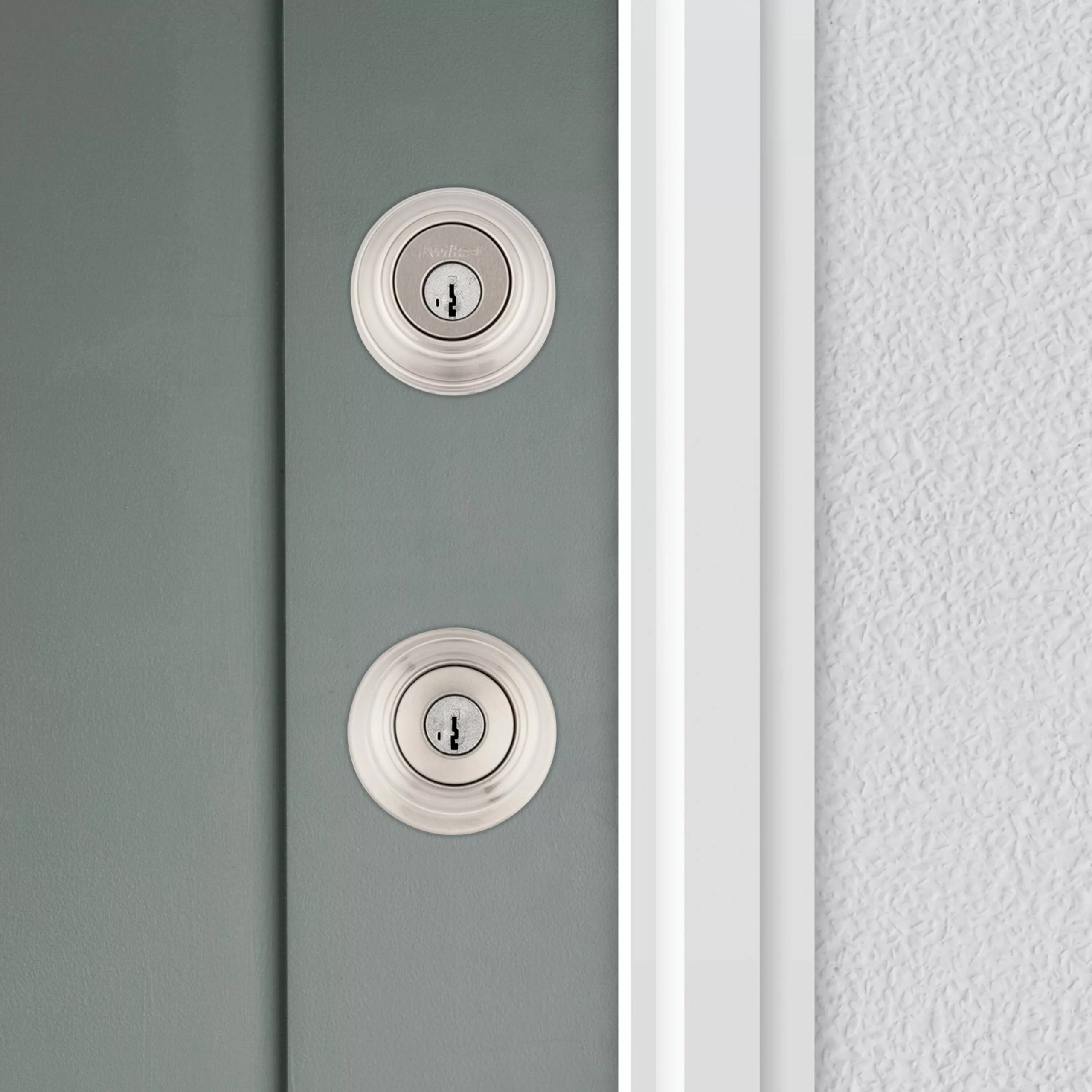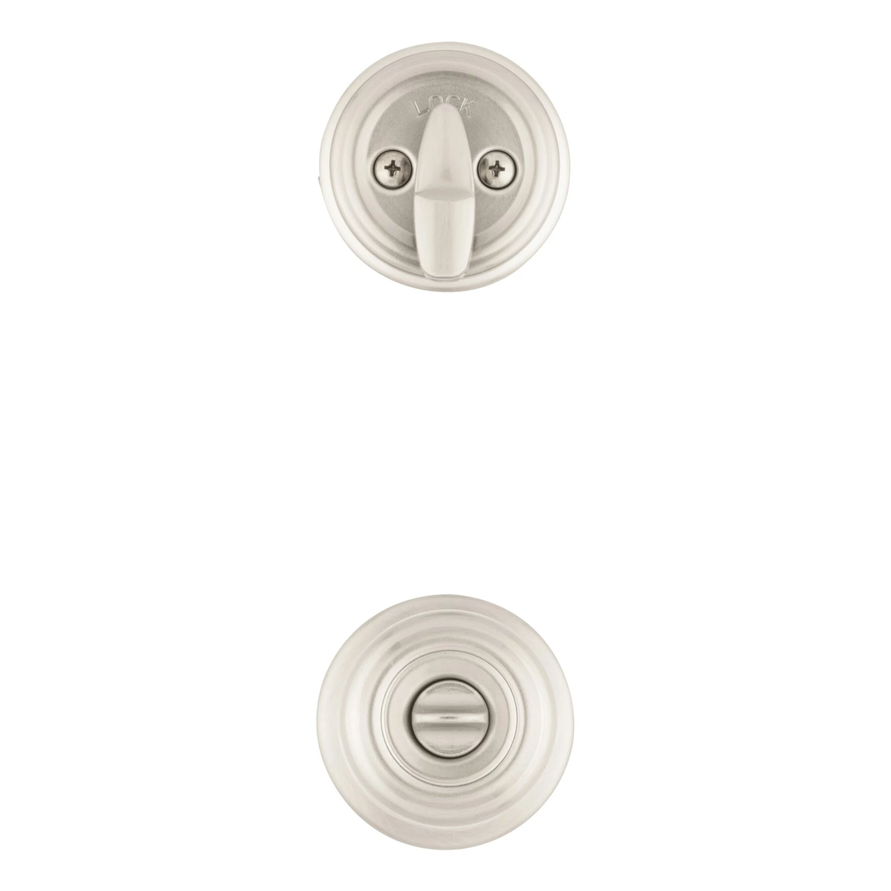 Step up to designer styles and superior security with Kwikset Signature Series products. Classic lines and enhanced stylsing make Cameron a great choice for many home designs. This combo pack provides two locking points — keyed entry and a keyed deadbolt. The crisp, clean appearance of the Satin Nickel finish adds to the overall look of the product and brings a modern feel.