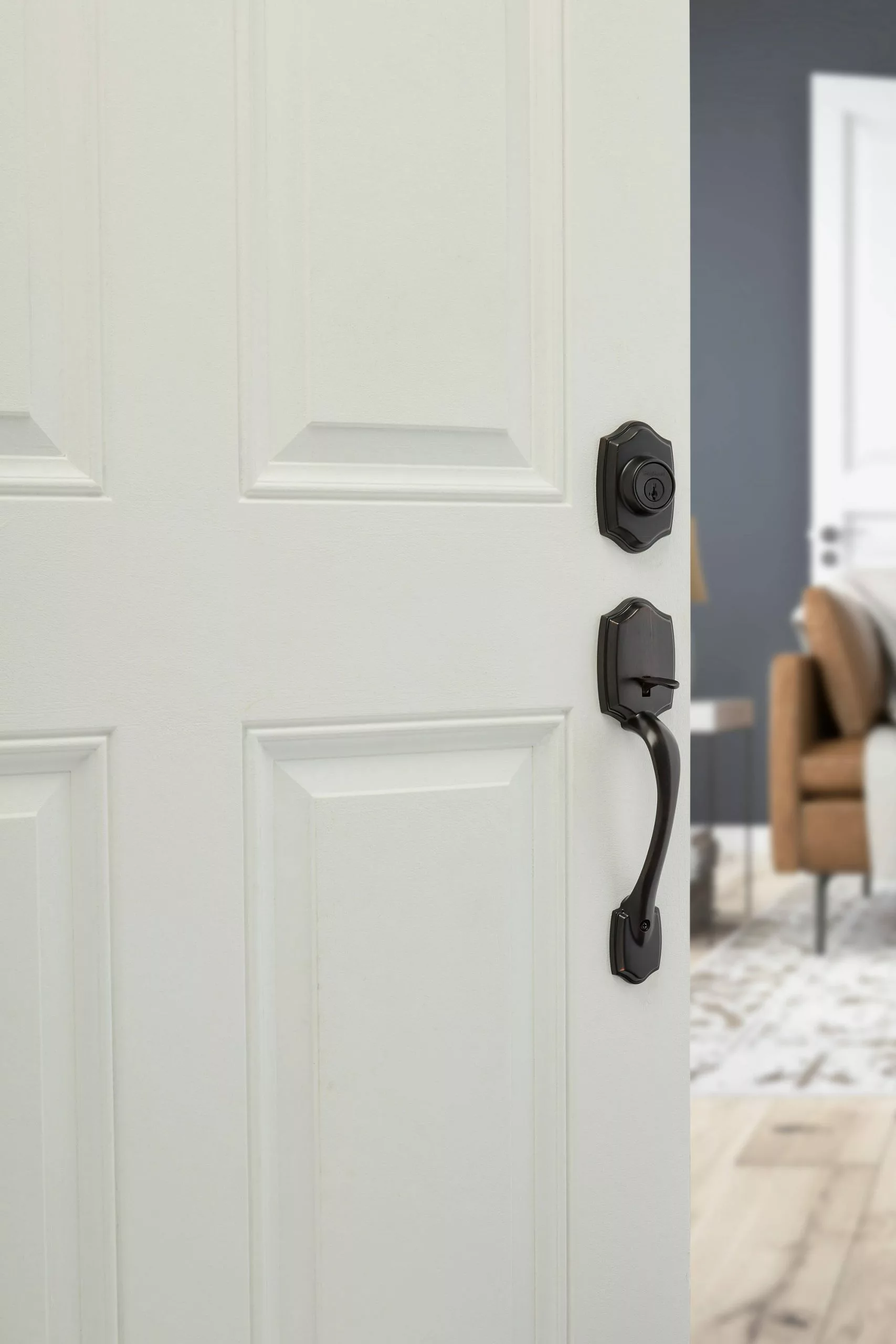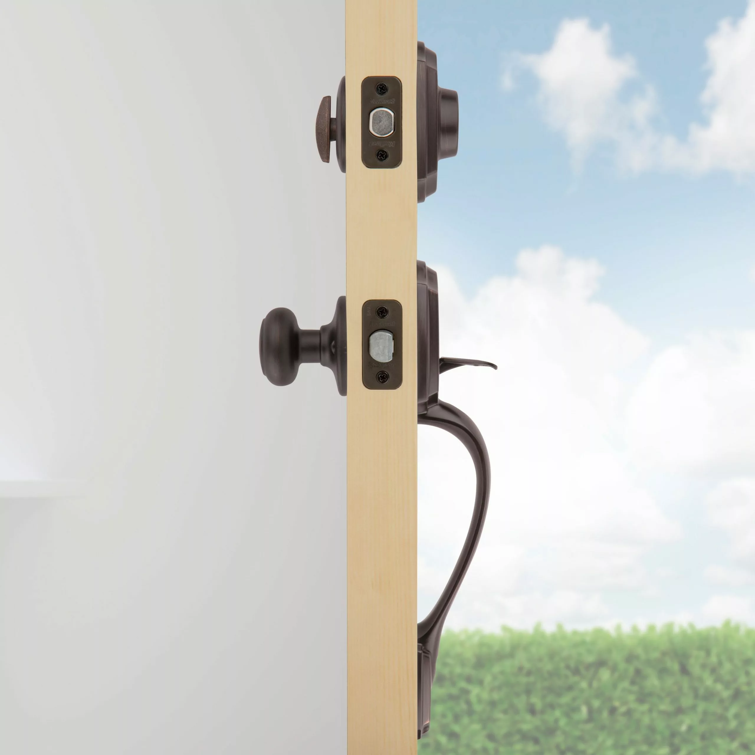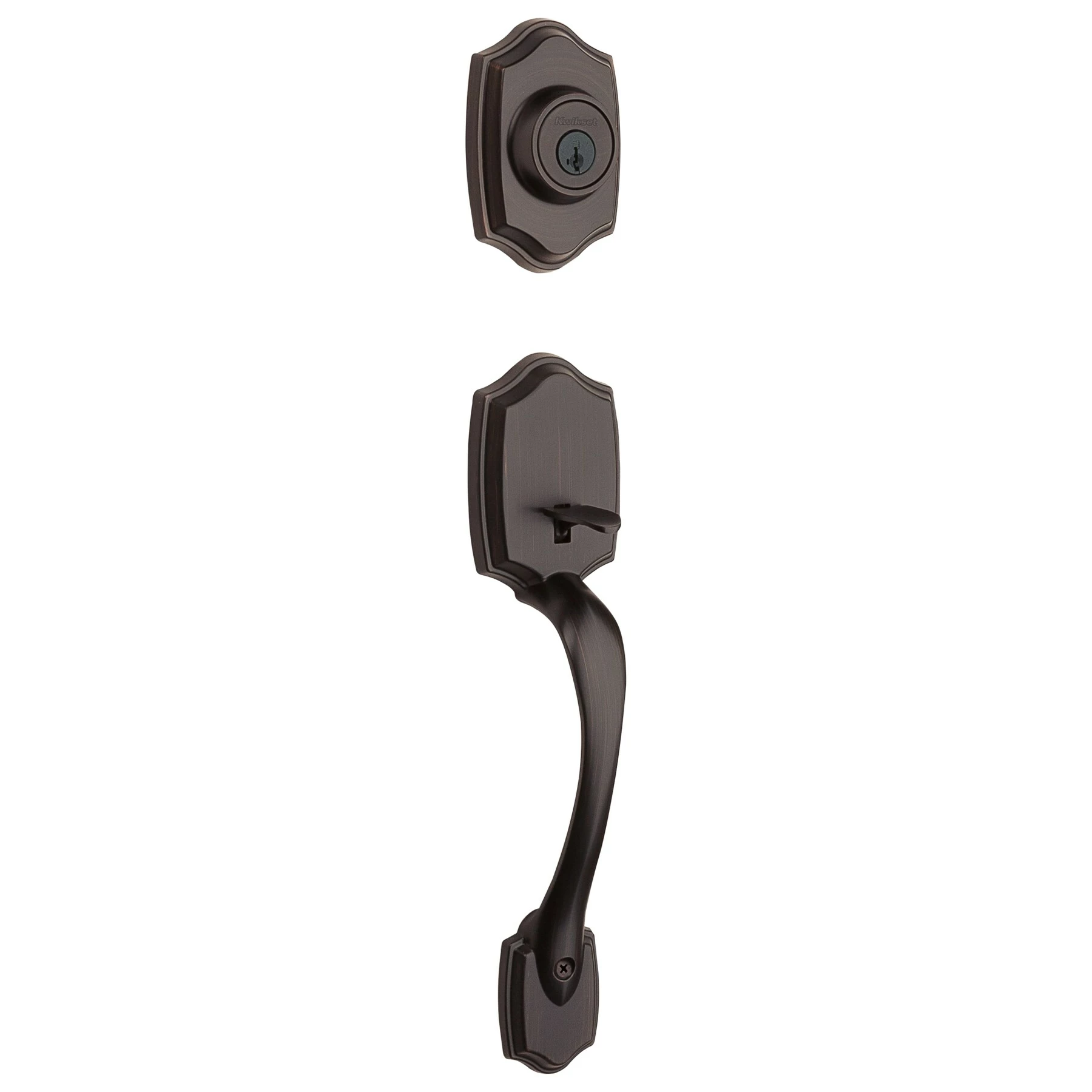 As the industry leader, Kwikset has provided trusted security for over 70 years and has become synonymous with security, peace of mind, style and innovation. The beveled design of the Belleview adds elegance to its traditional arched shape. The latch bolt is operated by the thumb piece on the outside and the grip on the inside. The deadbolt is operated by a key on the outside and a thumb turn on the inside. The Venetian Bronze finish is hand-rubbed to reveal unique bronze highlights and provides a rich and warm complement to the product’s style.