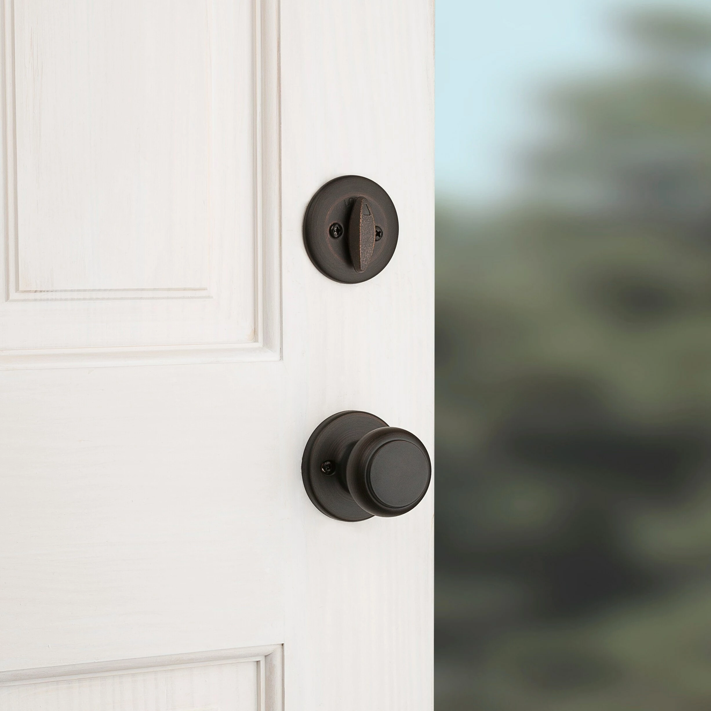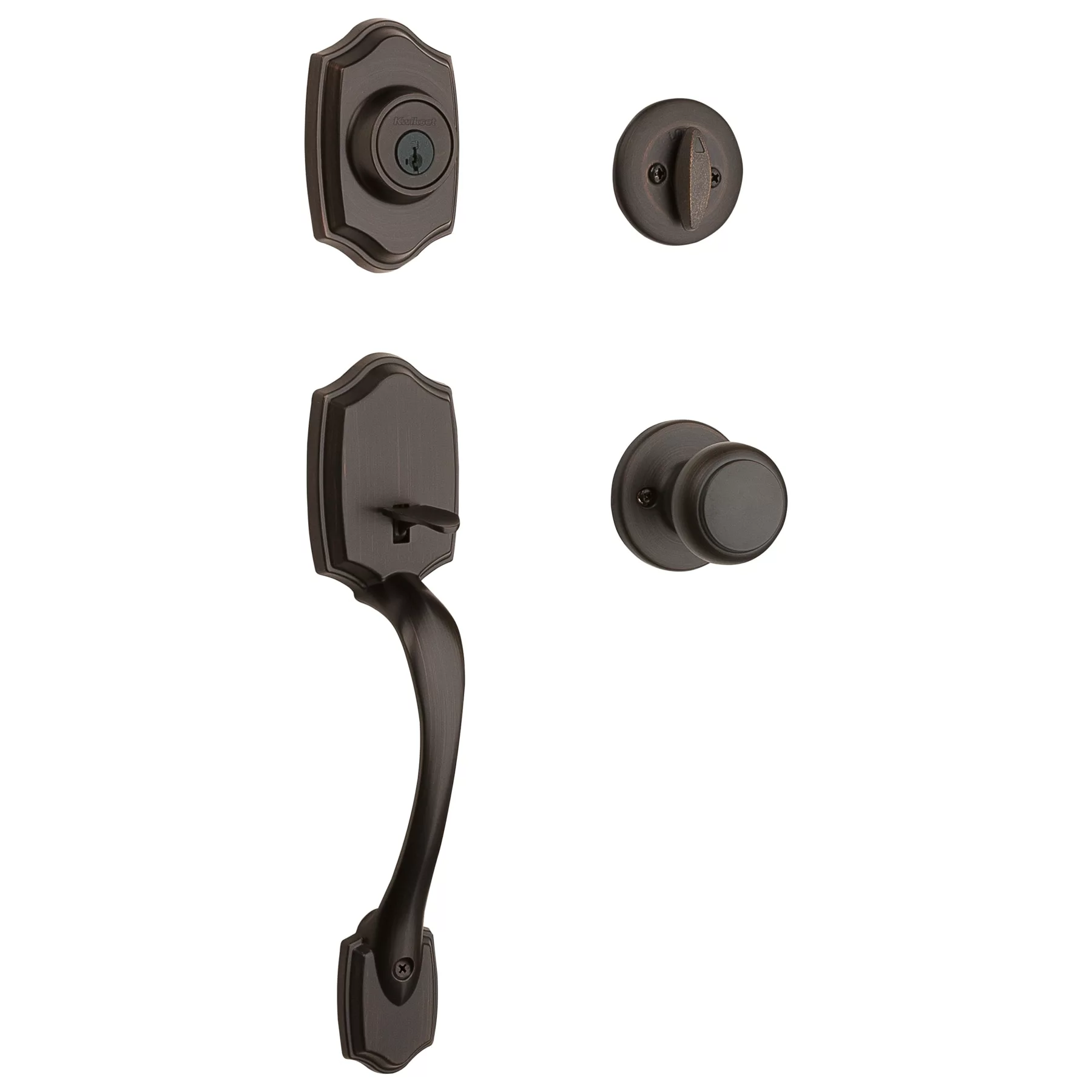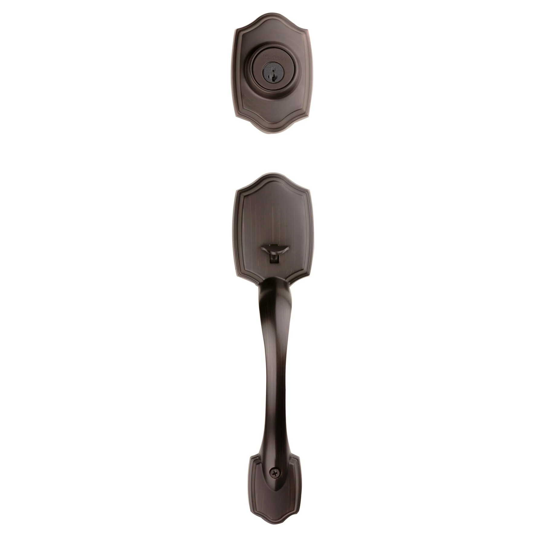 As the industry leader, Kwikset has provided trusted security for over 70 years and has become synonymous with security, peace of mind, style and innovation. The beveled design of the Belleview adds elegance to its traditional arched shape. The latch bolt is operated by the thumb piece on the outside and the grip on the inside. The deadbolt is operated by a key on the outside and a thumb turn on the inside. The Venetian Bronze finish is hand-rubbed to reveal unique bronze highlights and provides a rich and warm complement to the product’s style.