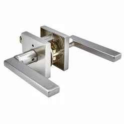 - Latch has 2 interchangeable faceplates; round corner and square corner