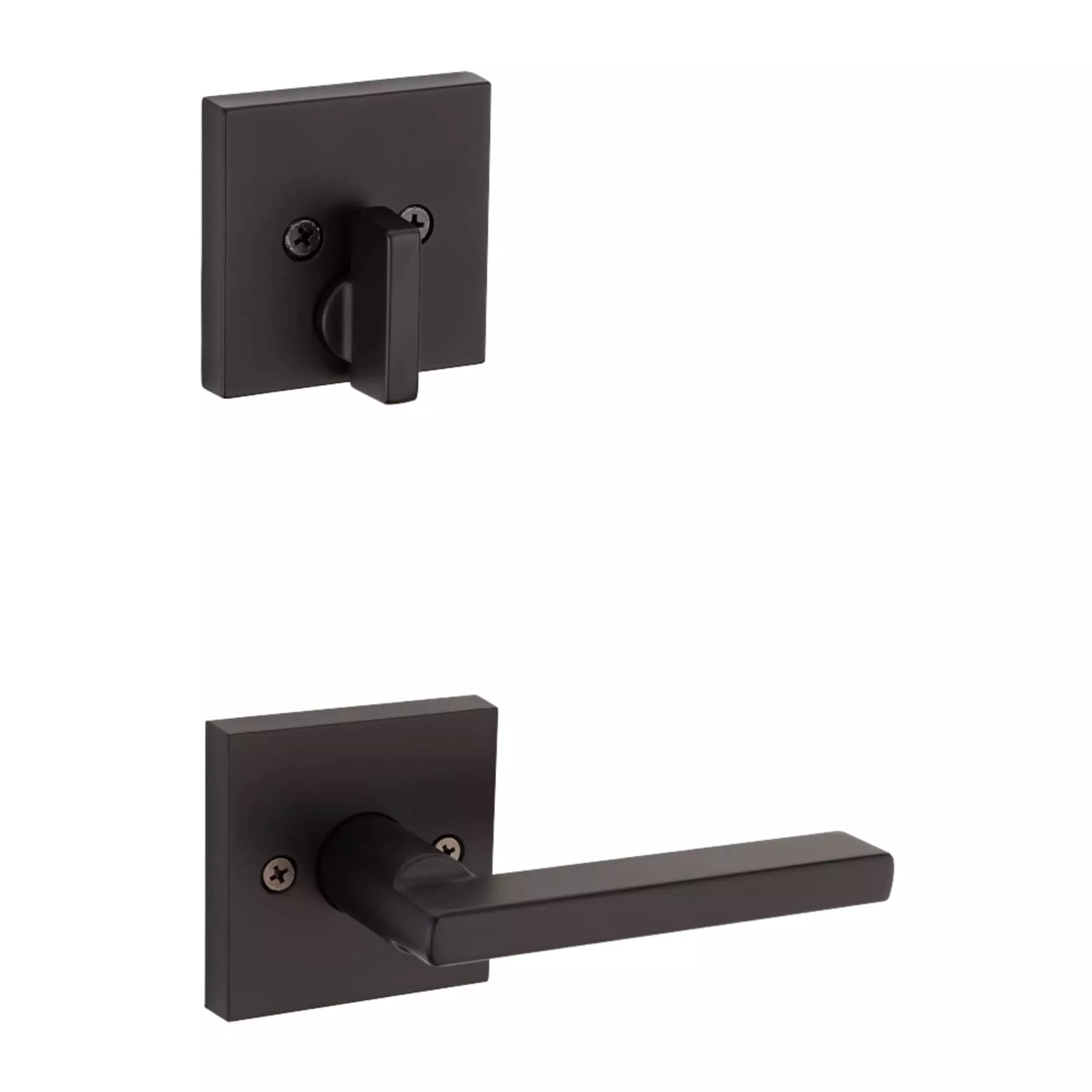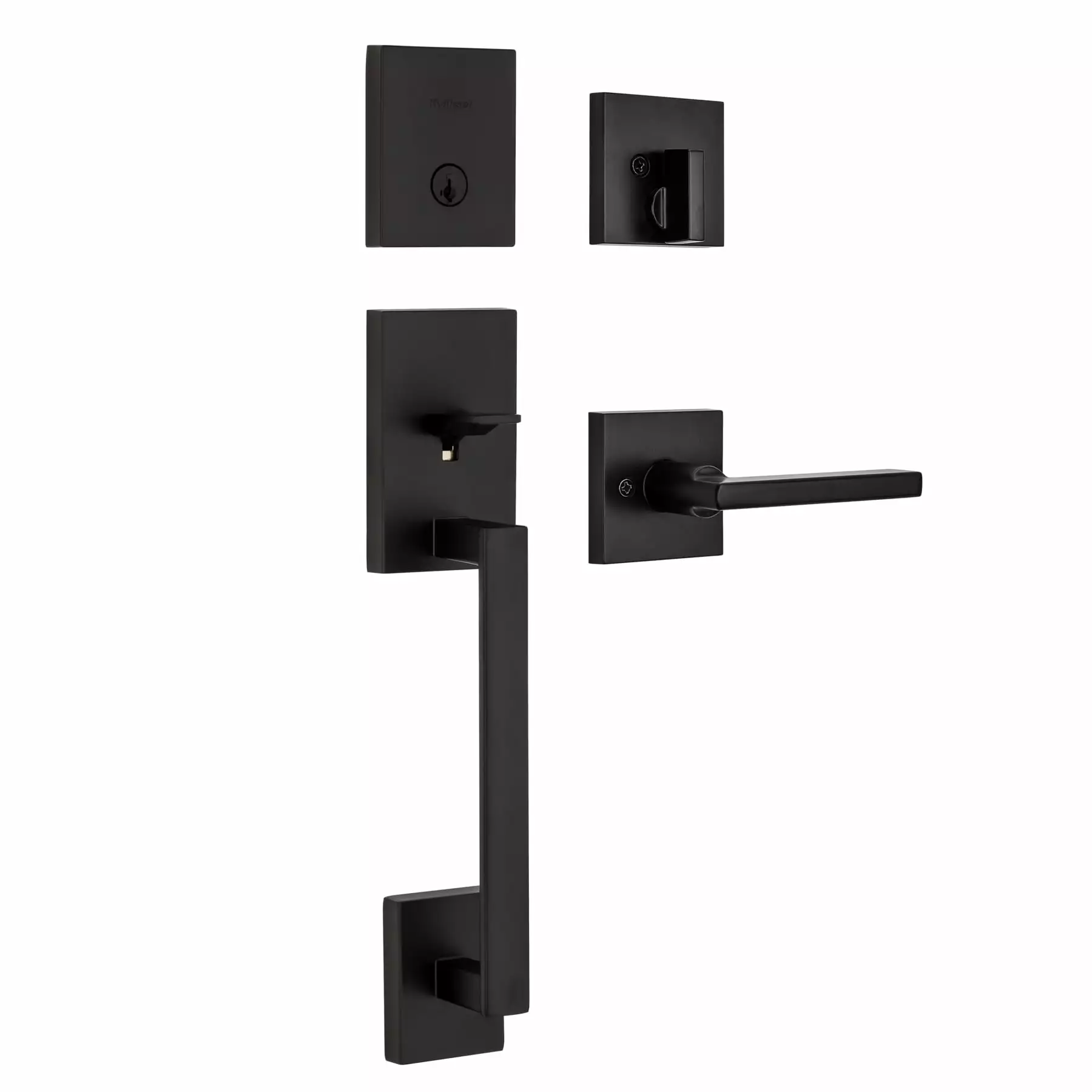 Step up to designer styles and superior security with Kwikset Signature Series products. The San Clemente handleset has a sleek, modern look. With clean lines and a variety of finishes, you can easily upgrade the entry to your home. San Clemente also features an adjustable screw that allows for easy door mounting and a guaranteed fit. The latch bolt is operated by the thumb piece on the outside and the grip on the inside. The deadbolt is operated by a key on the outside and a thumb turn on the inside. The rich tones of Matte Black add the finishing touch to this product. The Matte Black finish provides a rich and warm complement to the product’s style.