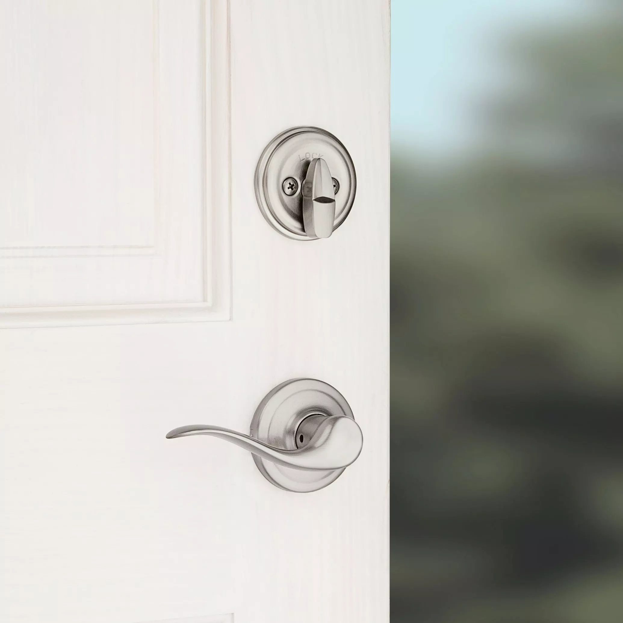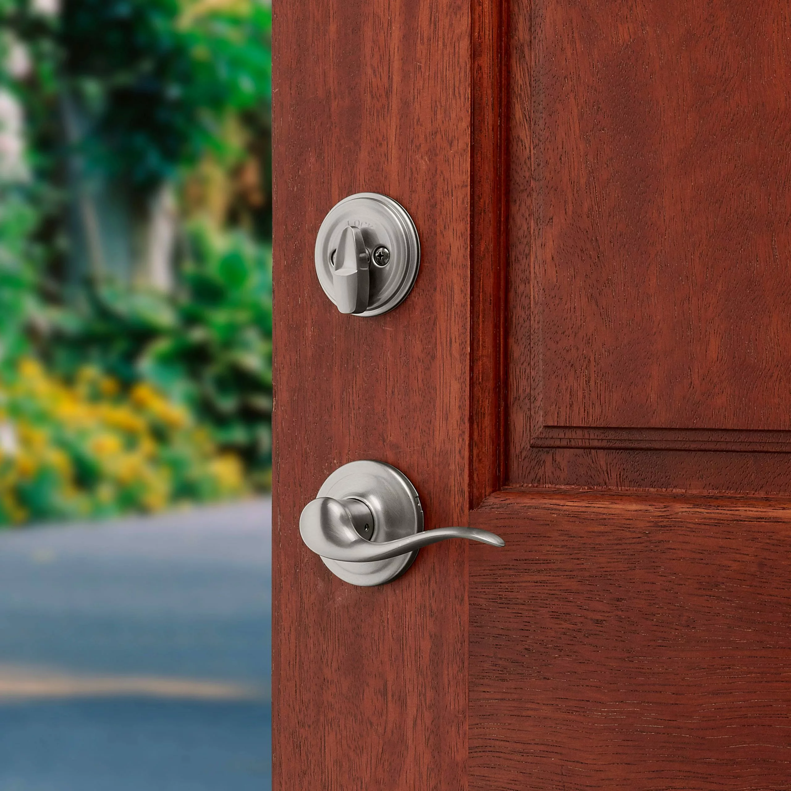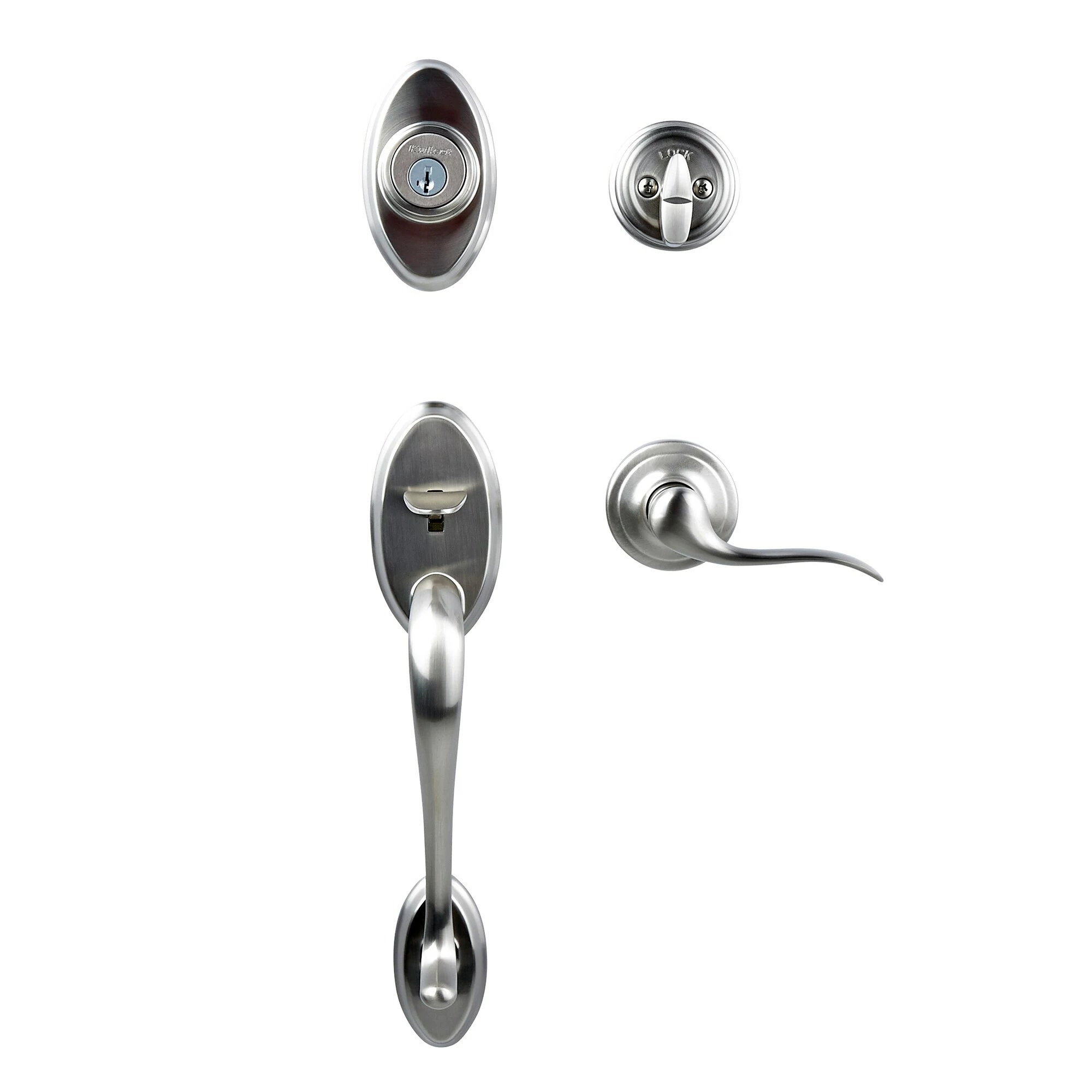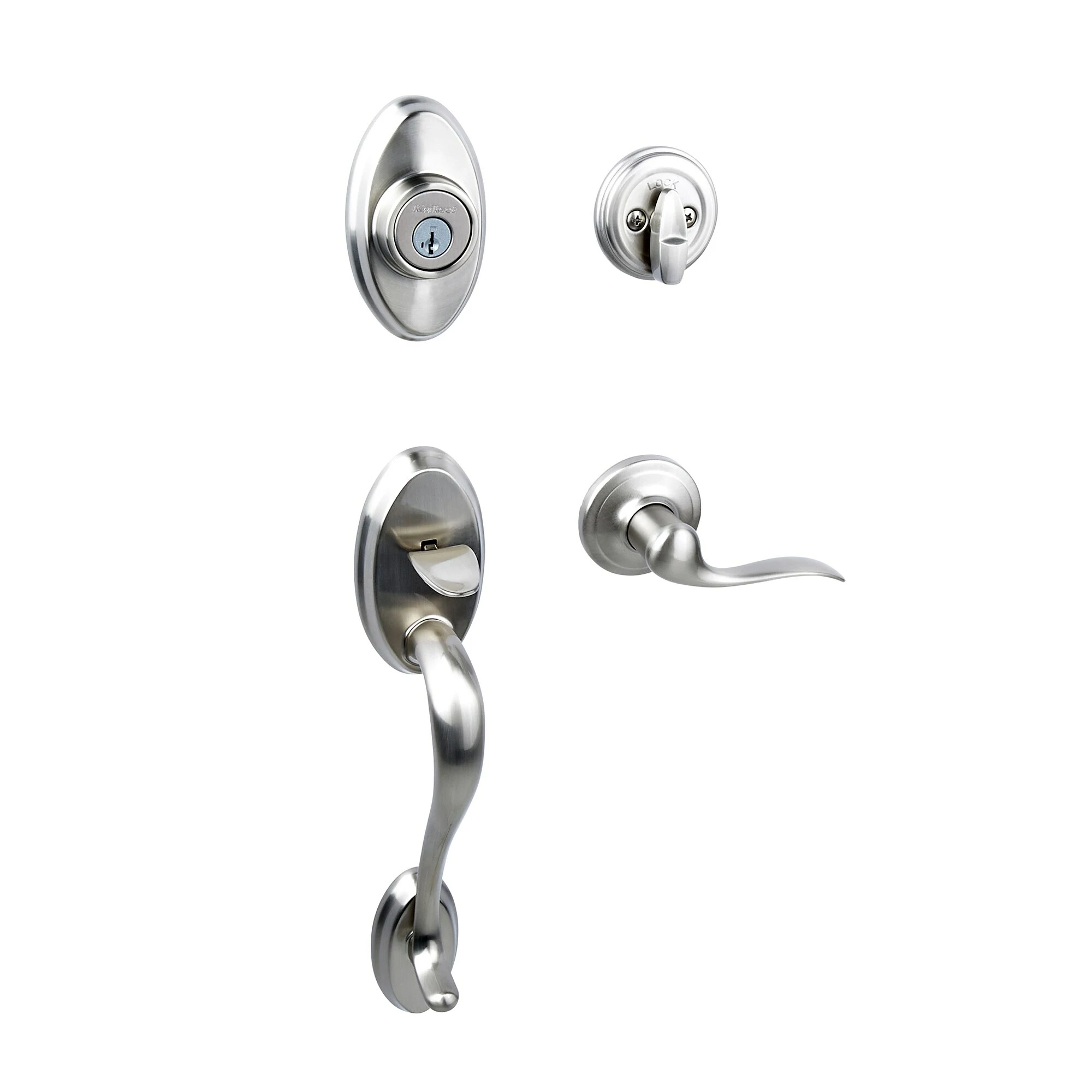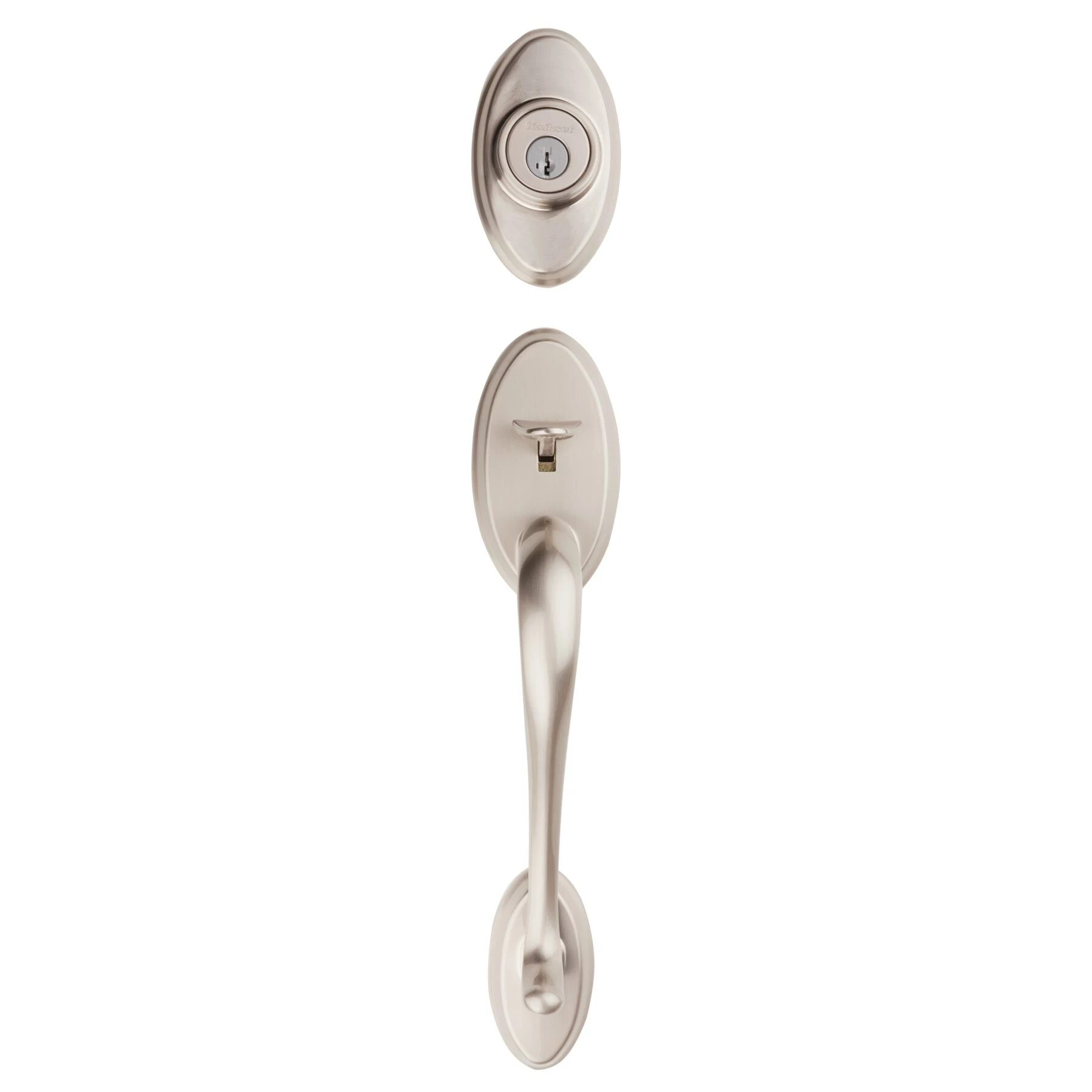 Step up to designer styles and superior security with Kwikset Signature Series products. Shelburne’s curvaceous styling expresses a sense of beauty and elegance. Handleset can be locked or unlocked by a key from the outside or with a key/turnpiece from the inside. The crisp, clean appearance of the satin nickel finish adds to the overall look of the product and brings a modern feel.