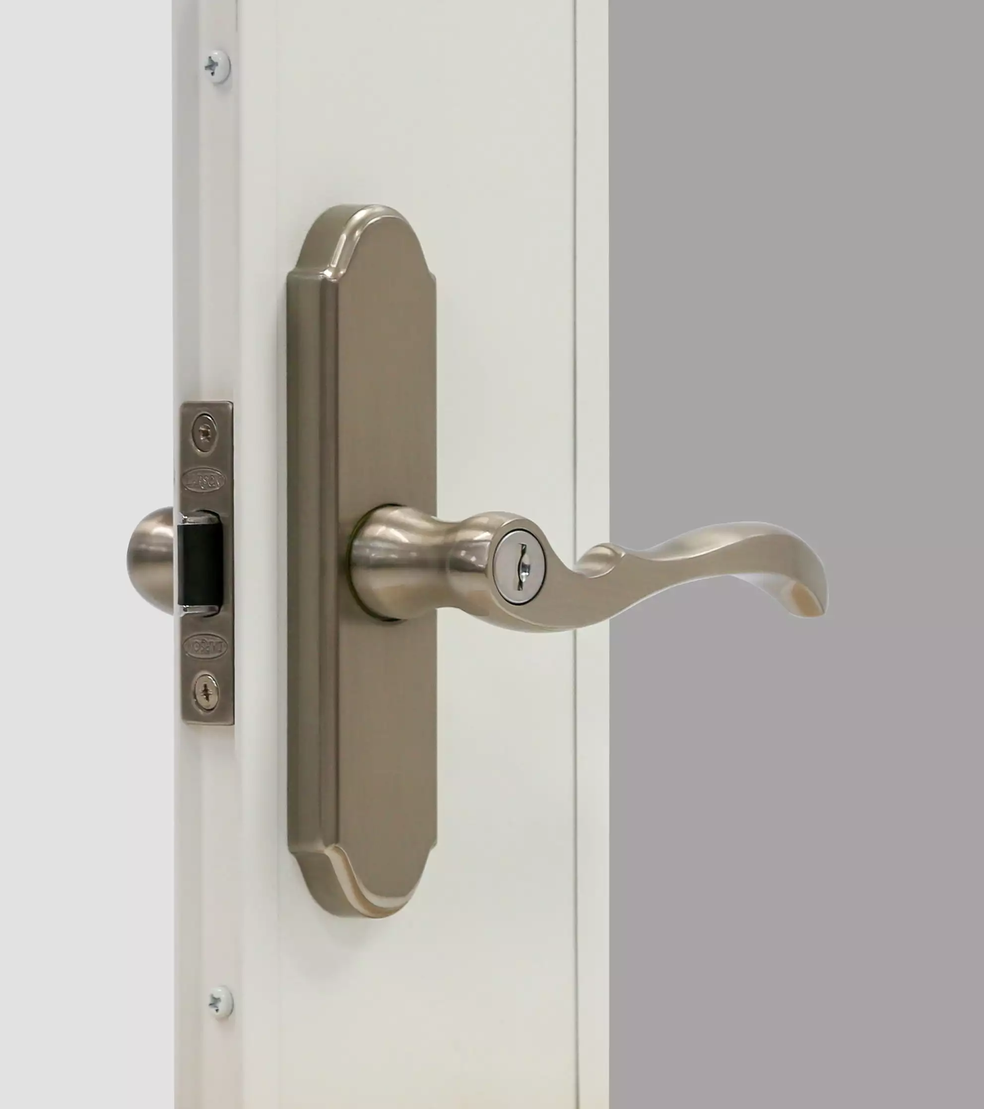 - Matching interior and exterior levers with built-in keyed lock
