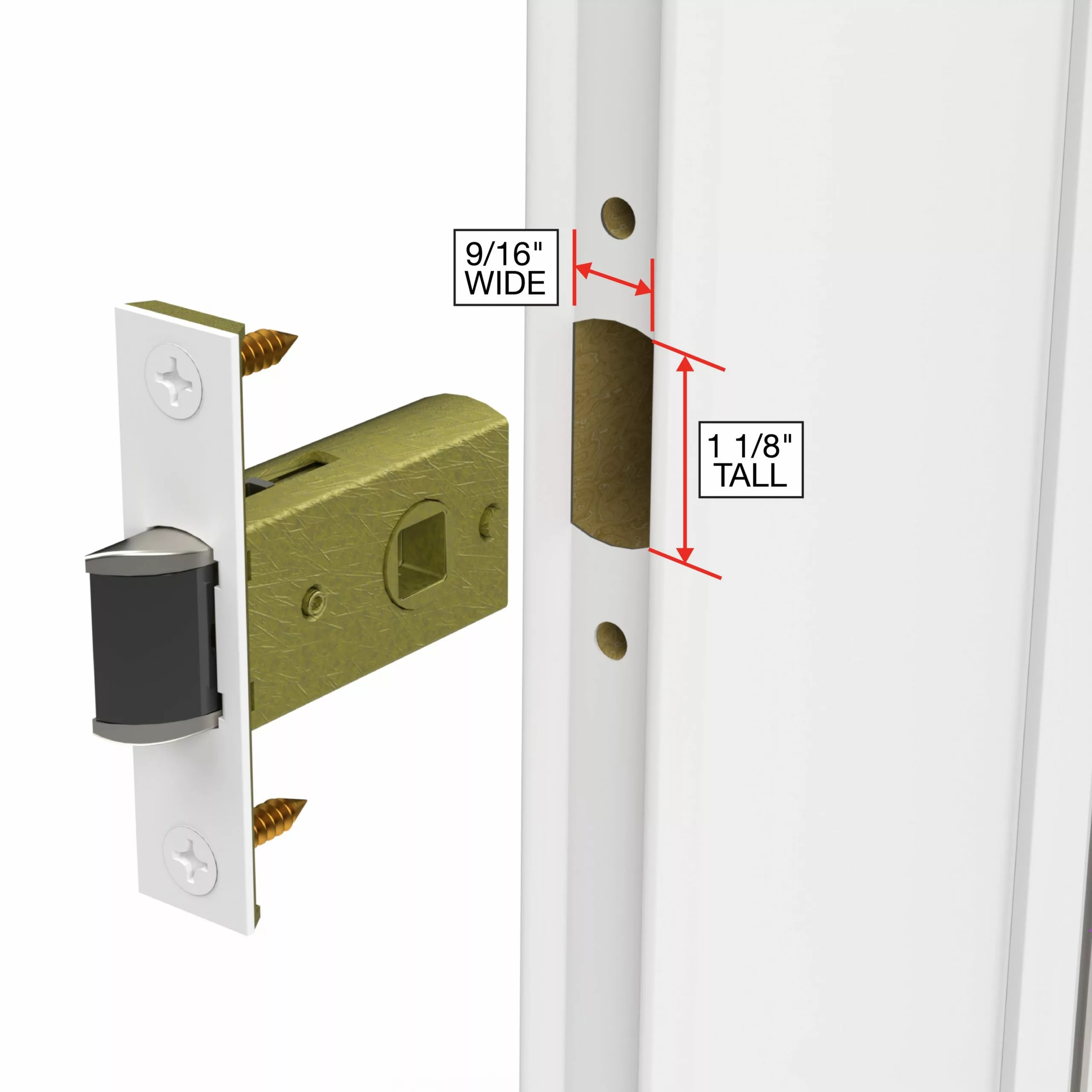 - Door must have a factory bored 9/16-inch by 1-3/8-inch mortised hole on the edge of the door