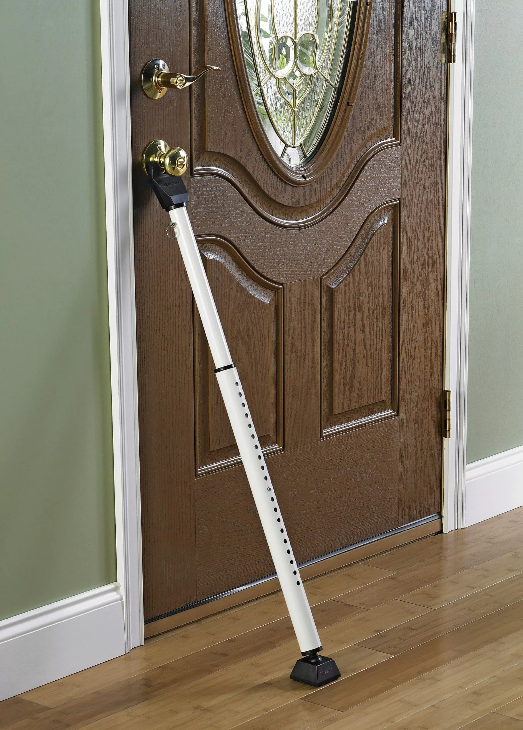 The Master Lock 265D security door bar is made of rugged 20 gauge steel construction to resist forced entry through doors and sliding patio doors. The bar adjusts from 27-1/2 in. (70 cm) – 42 in. (1.1 m) for application flexibility. The pivoting ball joint assures full contact with floor, and padded foot provides sure grip without scratching. The limited lifetime warranty provides peace of mind from a brand you know and can trust.