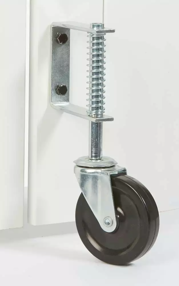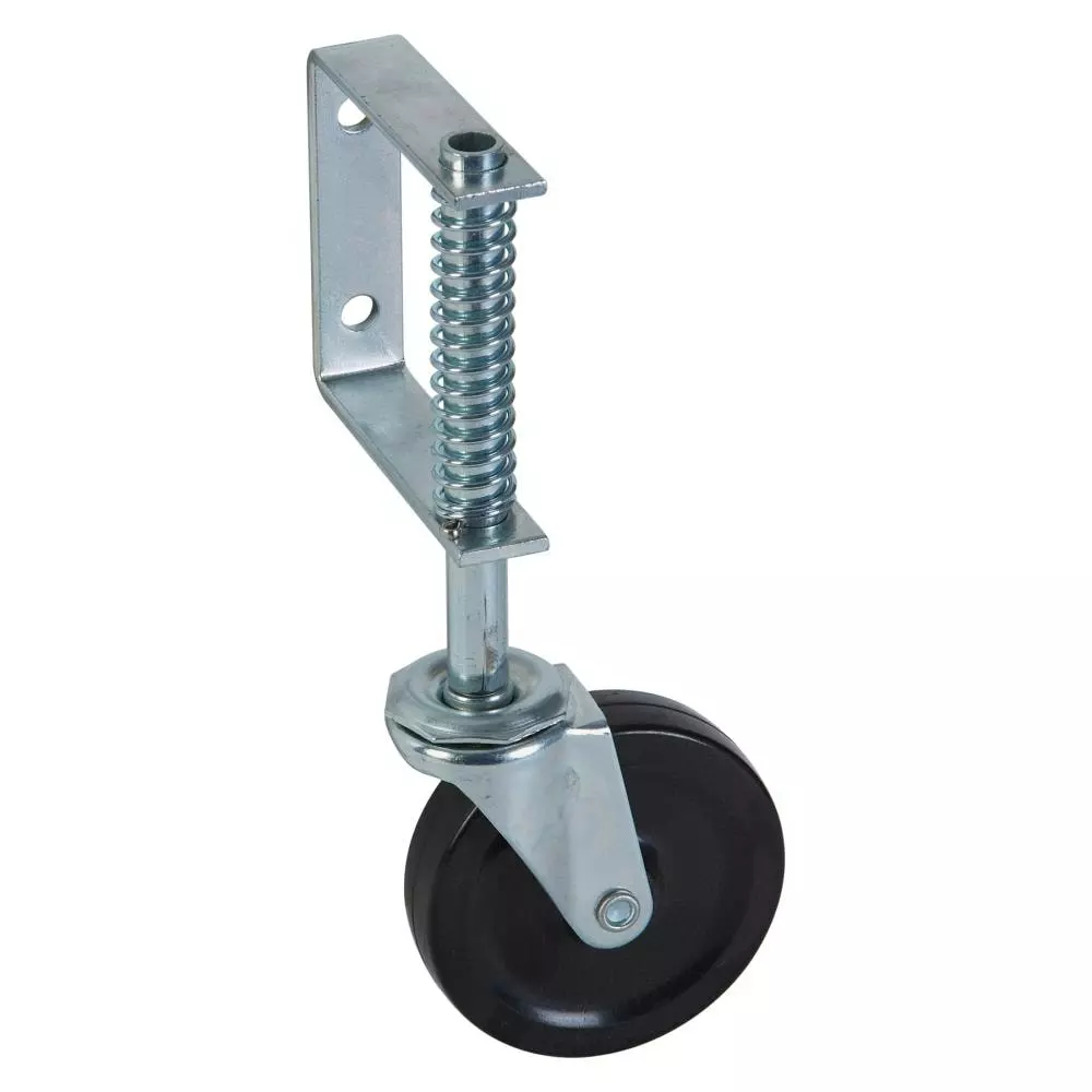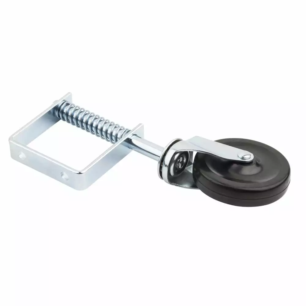 - Rubber wheel and metal body construction provides high strength and high durability. Spring-loaded to absorb shock over uneven surfaces