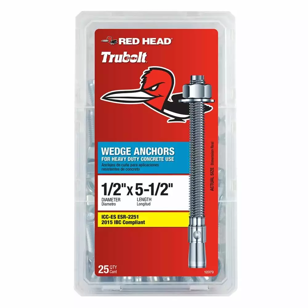 Red Head wedge anchors are heavy-duty, zinc-plated, steel anchors designed for fastening applications in solid concrete. They are ideal for attaching 2 x 4s, sill plates, and electrical equipment. Other common applications include attaching structural supports to concrete, tilt-up construction, highway rails and posts, HVAC and plumbing systems, metal doors, and window frames. They feature a versatile fully threaded design, which is standard in sizes up to 3/4 in. x 10 in. and a corrosion resistant, one piece stainless steel clip. Red Head wedge anchors are code recognized for use in uncracked concrete