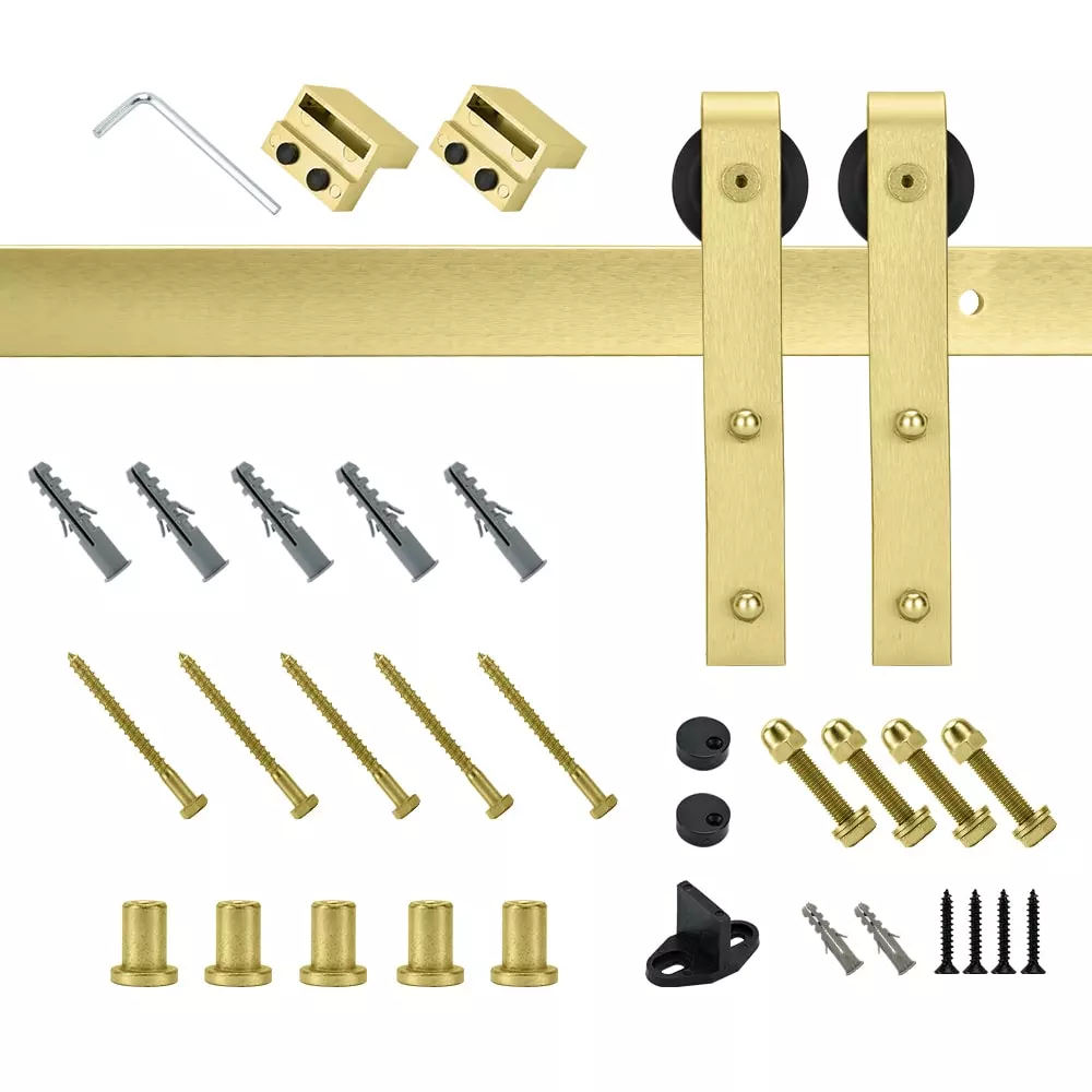 Adding a sliding barn door is a great way to update your home. This soft gold 78-in. Barn door hardware kit provides both style and functionality with its modern design and smooth operation.