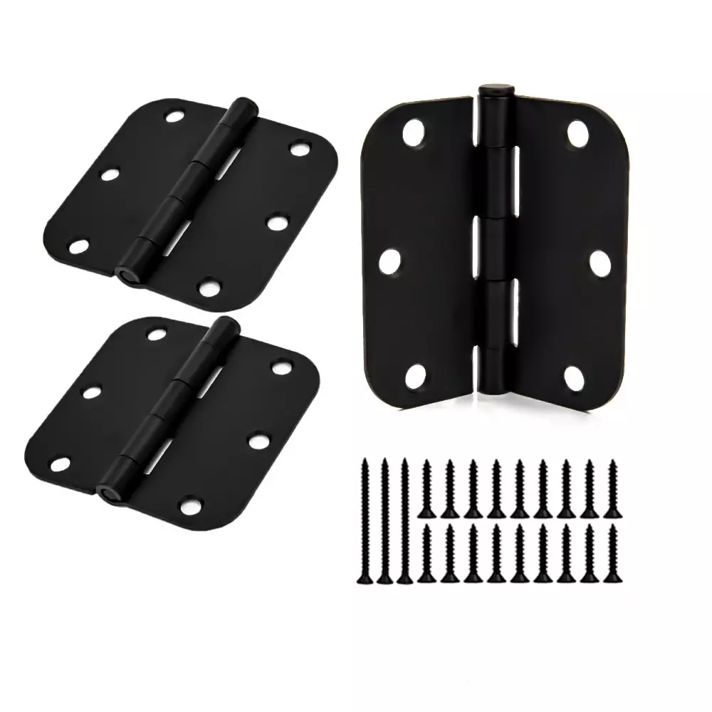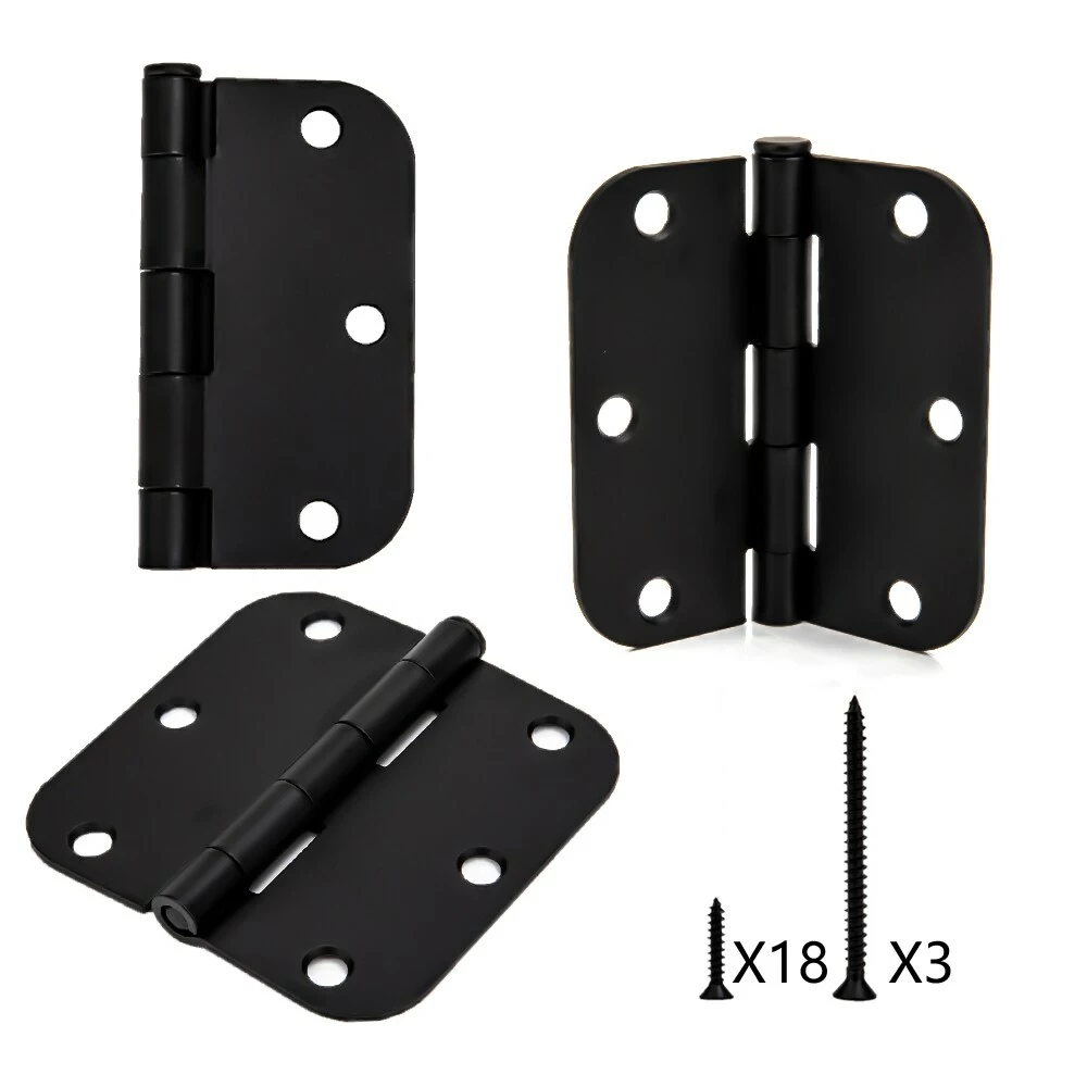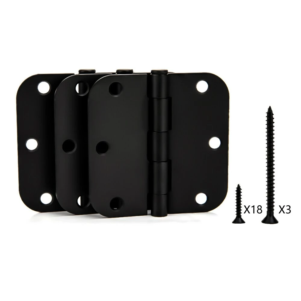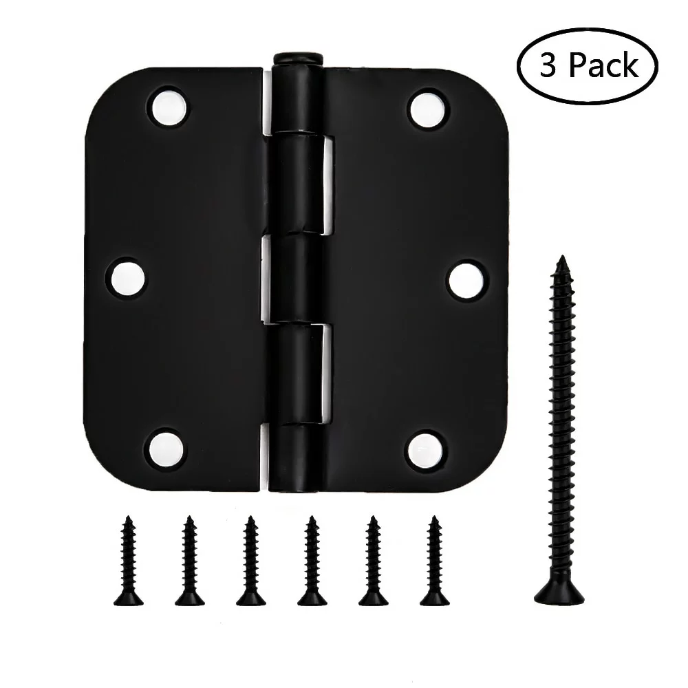 3pack 3-1/2 In. 5/8 In. radius door hinge matte black.