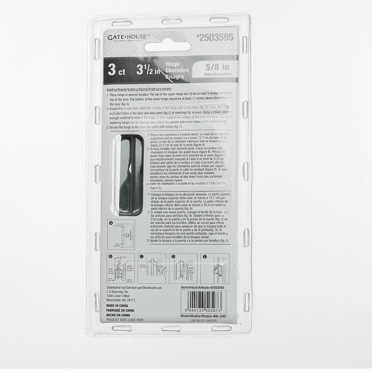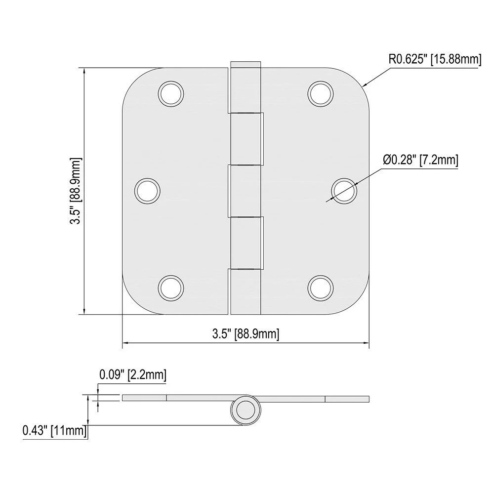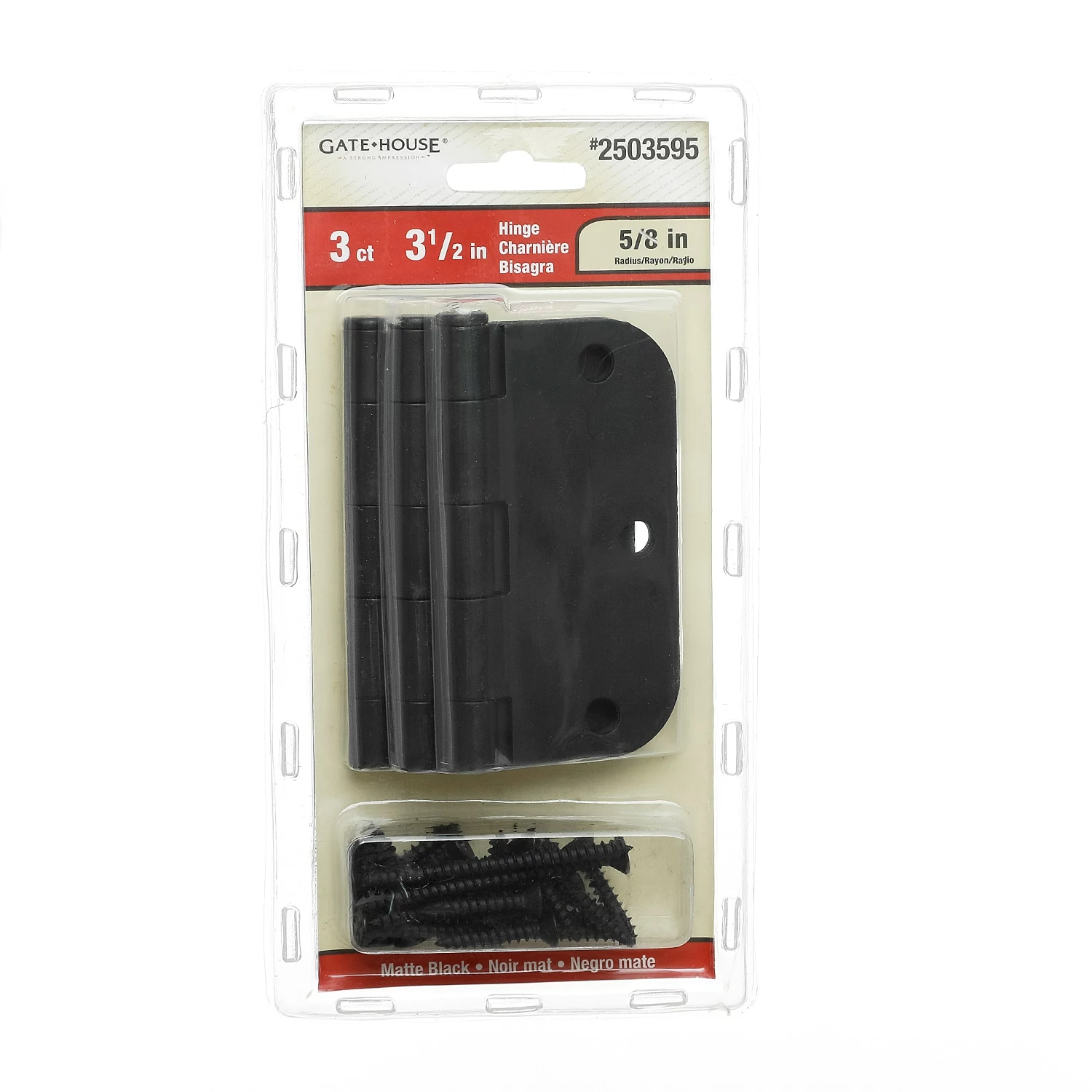 3pack 3-1/2 In. 5/8 In. radius door hinge matte black.