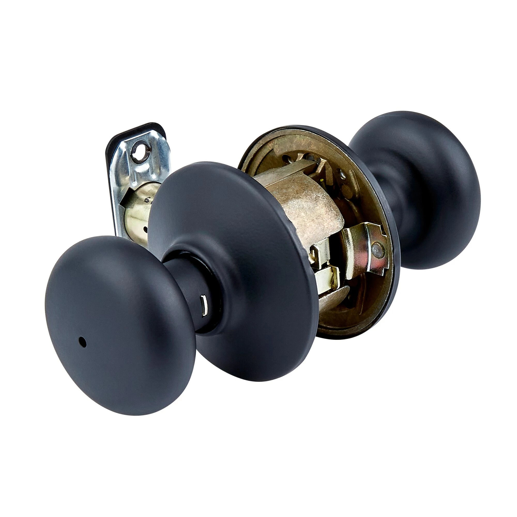 - IDEAL USE: Privacy function is perfect for use on bedroom and bathroom doors where locking may be desired; push button automatically unlocks from the inside when the door handle is rotated or from the outside in an emergency with the included pin key