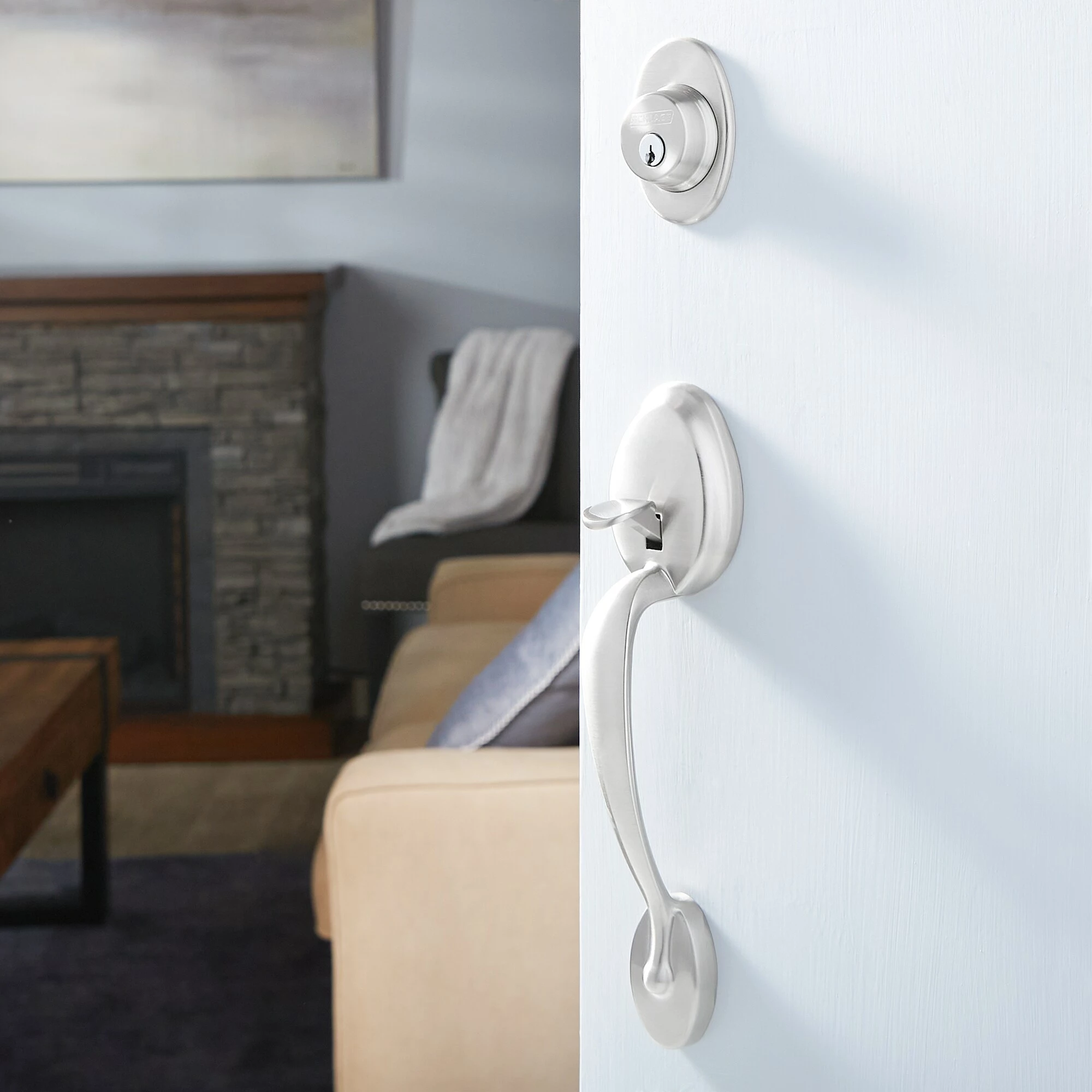 This Schlage handleset features a decorative deadbolt, matching exterior handleset grip and interior passage door knob or lever. Offering premium construction combined with a sleek design and industry-leading warranty, this is the perfect door handleset for your customized entryway. Trust your home to Schlage, makers of high-quality, innovative door hardware for over 100 years.