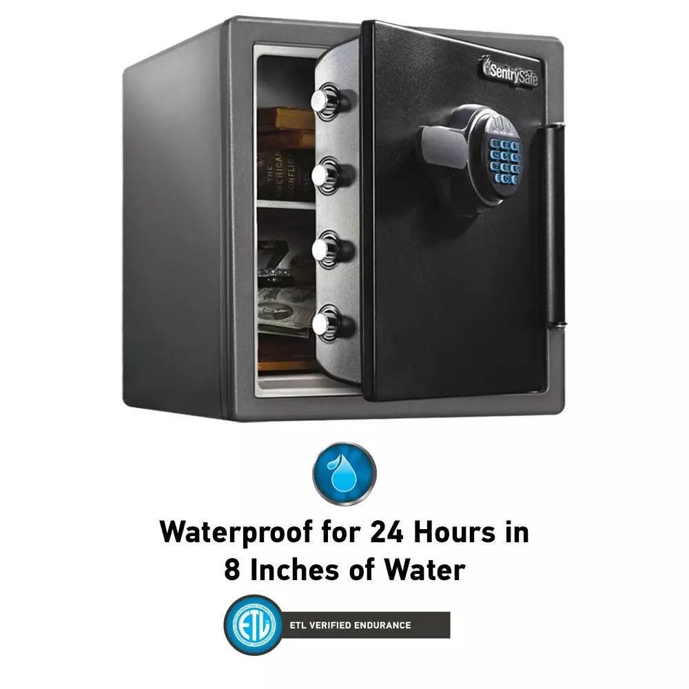 The SentrySafe SFW123FSC fireproof safe and waterproof safe has an interior light to make it easy to access your valuables in the dark. With UL Classified fire protection and ETL Verified for your important documents, digital media, and other valuables, the SFW12FSC is ideal for your home or business security needs.