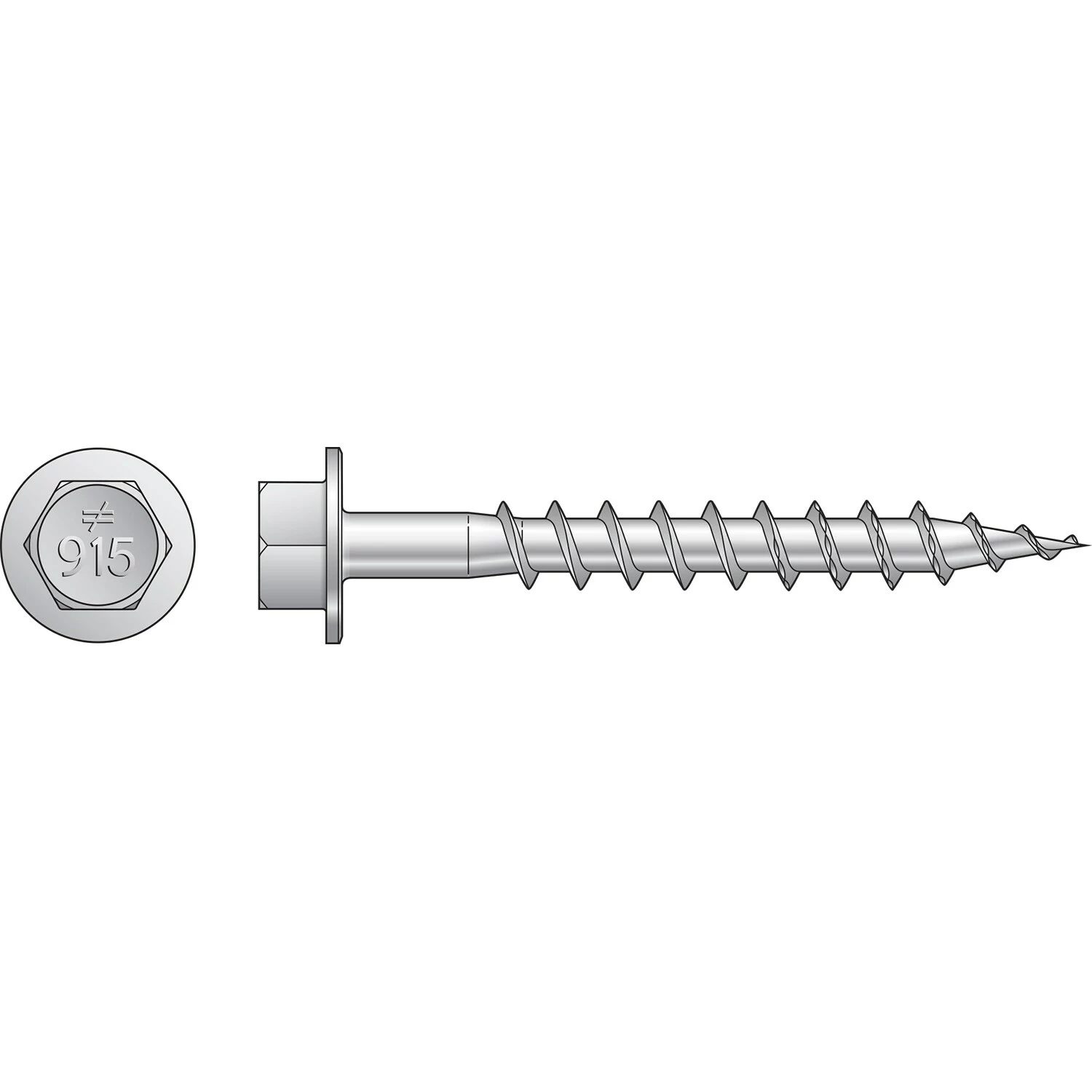 - 1/4-in hex head with 0.37-in diameter integrated washer reduces cam-out and is stamped with the Simpson Strong-Tie “no equal” sign and the fastener size for easy identification after installation